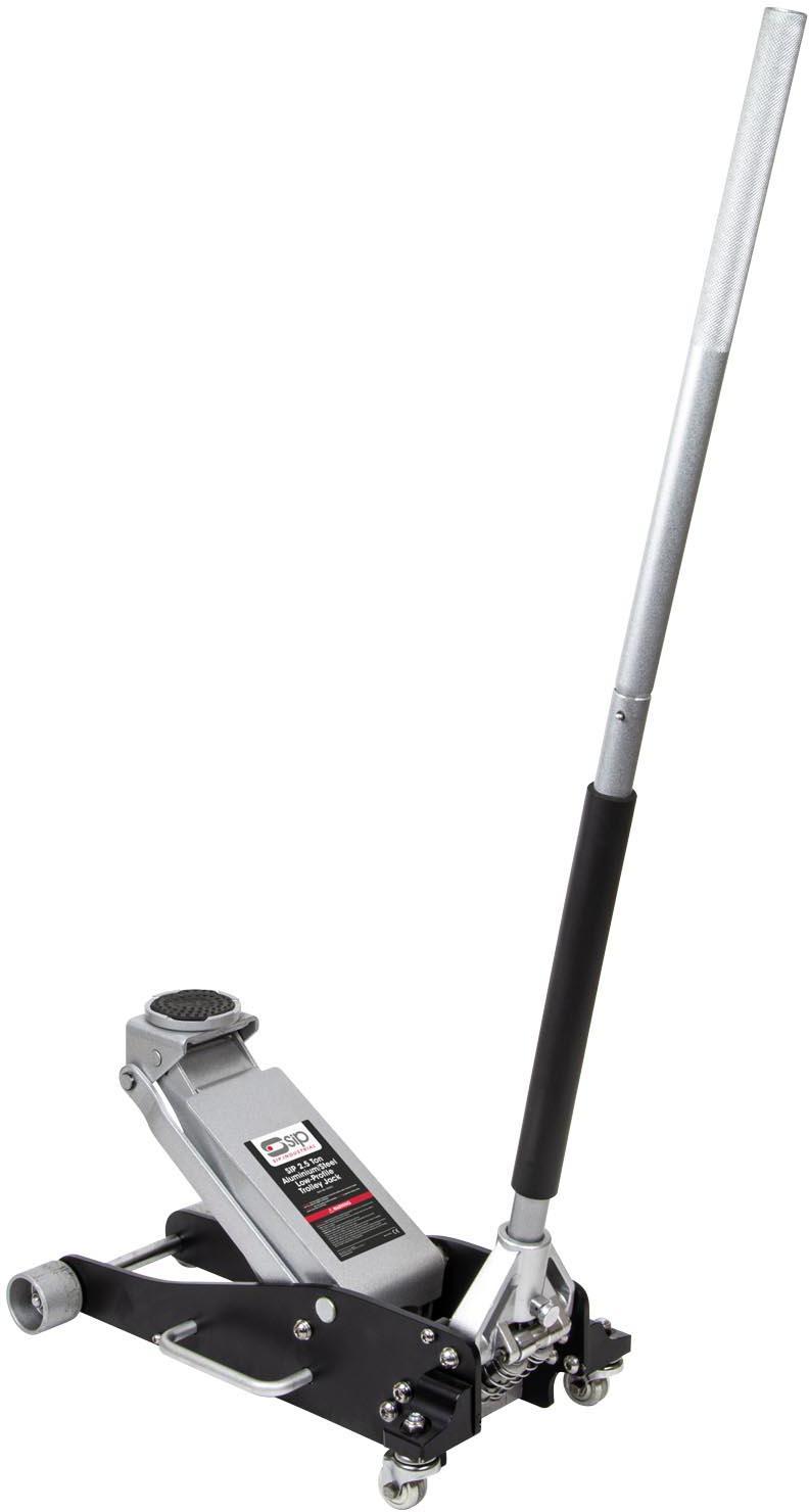 The SIP 2.5 Ton Aluminium/Steel Low-Profile Trolley Jack uses a Quick-Lift system that raises the saddle to the lift point, and safety bypass system to prevent overloading, plus XL saddle and pad.