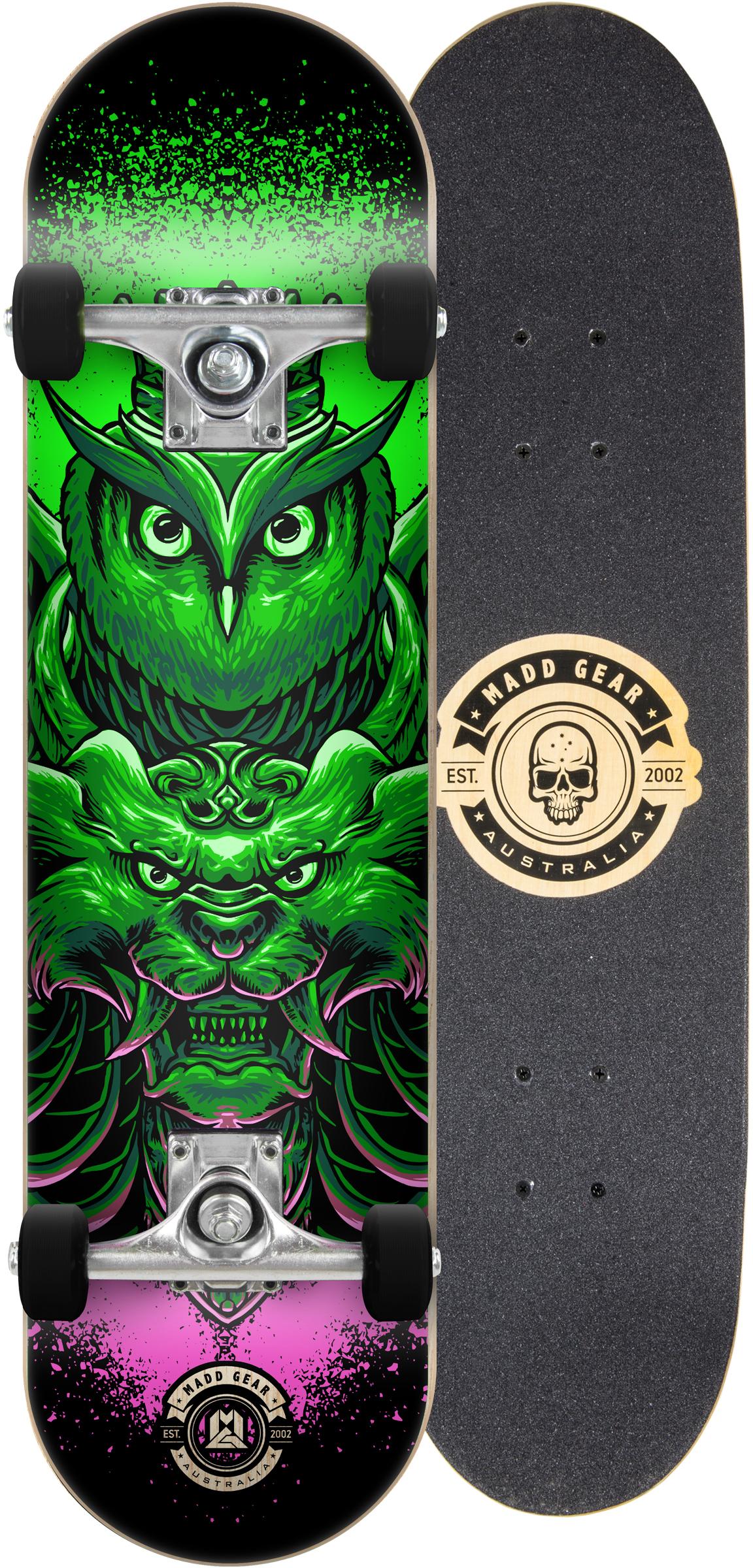 The all-new Madd Gear PRO Series Skateboards offer quality components paired with animal graphics in a daring green and pink colour combo.