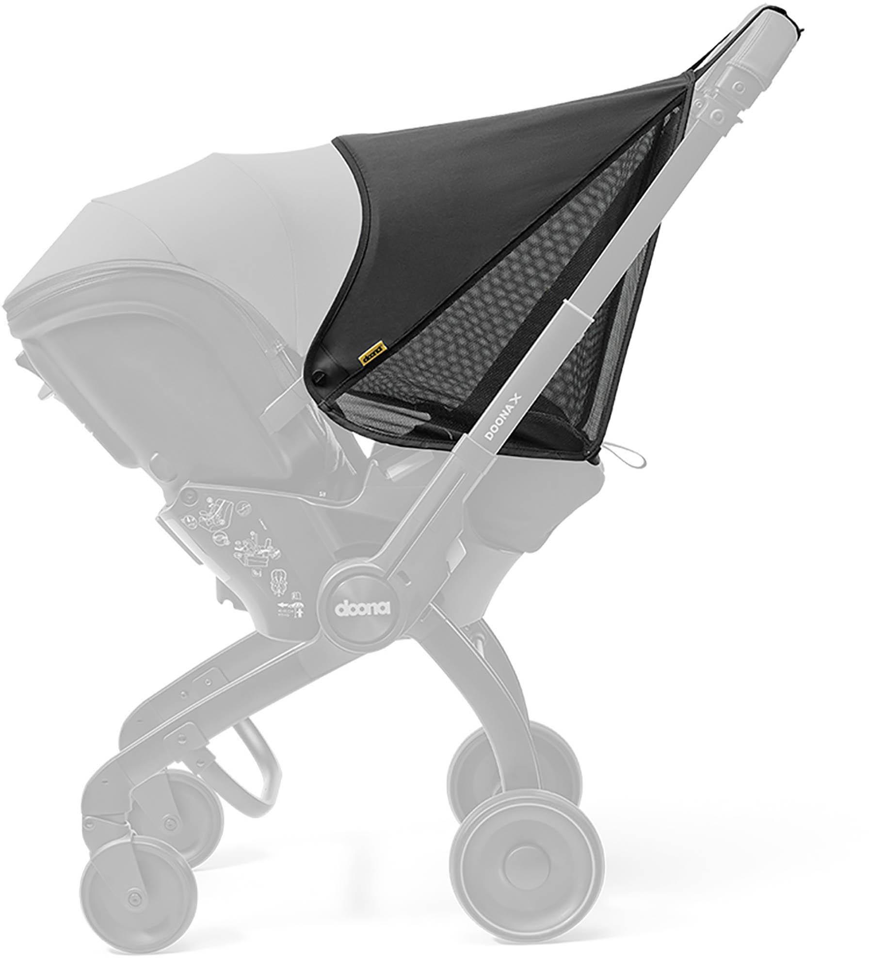The Doona X Sunshade Extension is designed to protect your baby from direct sunlight using its multi-positional feature. The additional protective layer provides enhanced UV protection (UPF 50+). With the simple snap-on Doona connectors, attaching and removing the Sunshade Extension is quick and easy. Includes a compact carry bag for easy storage when not in use.