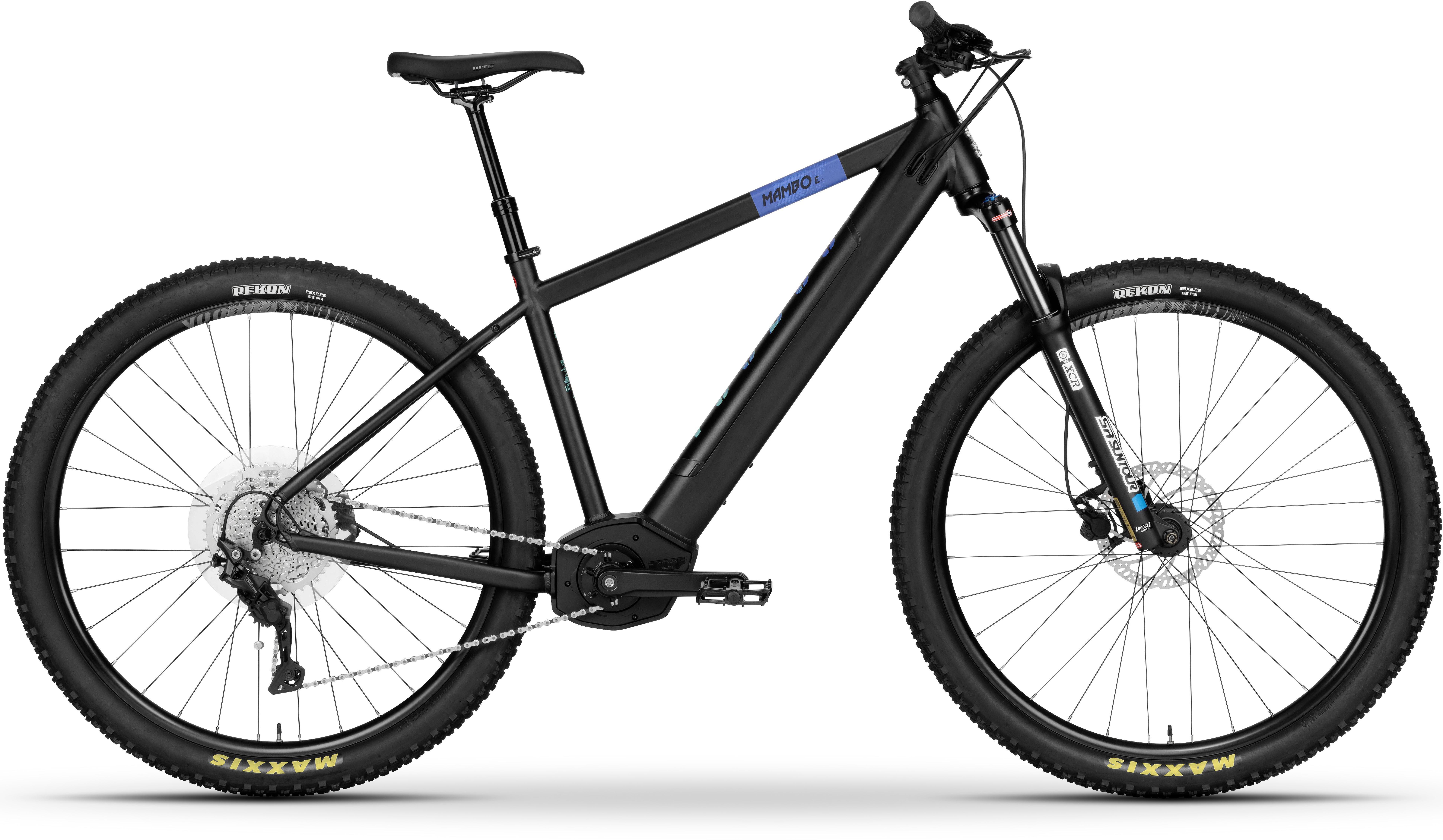 For optimal comfort, the Mambo-E features a Suntour XCR32 fork with 120mm of travel and a lockout mechanism. The fork not only absorbs shocks and vibrations from the terrain but also allows you to lock it out when riding on smoother surfaces, ensuring a personalised experience tailored to your preferences. The 29” double-wall tubeless compatible wheels, coupled with Maxxis Rekon tyres, contribute to the Mambo-E's exceptional stability and traction.