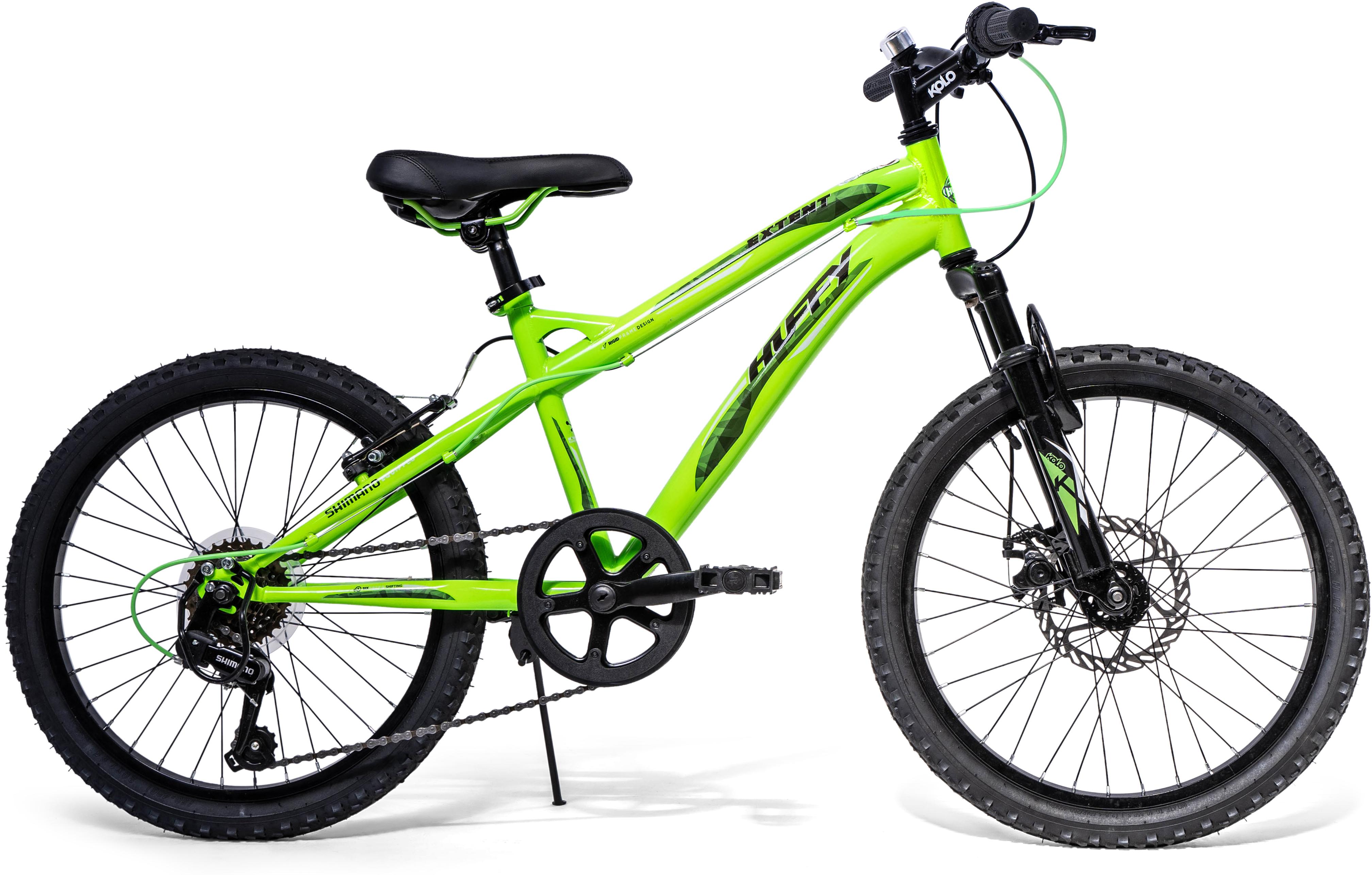 With the Huffy Extent Mountain Bike, your child will be hitting the trails and venturing off on adventures with this bright green kids mountain bike. Front disc brake plus rear V-brake provide increased stopping power. Microshift 6-speed twist shift gears deliver smooth shifting.