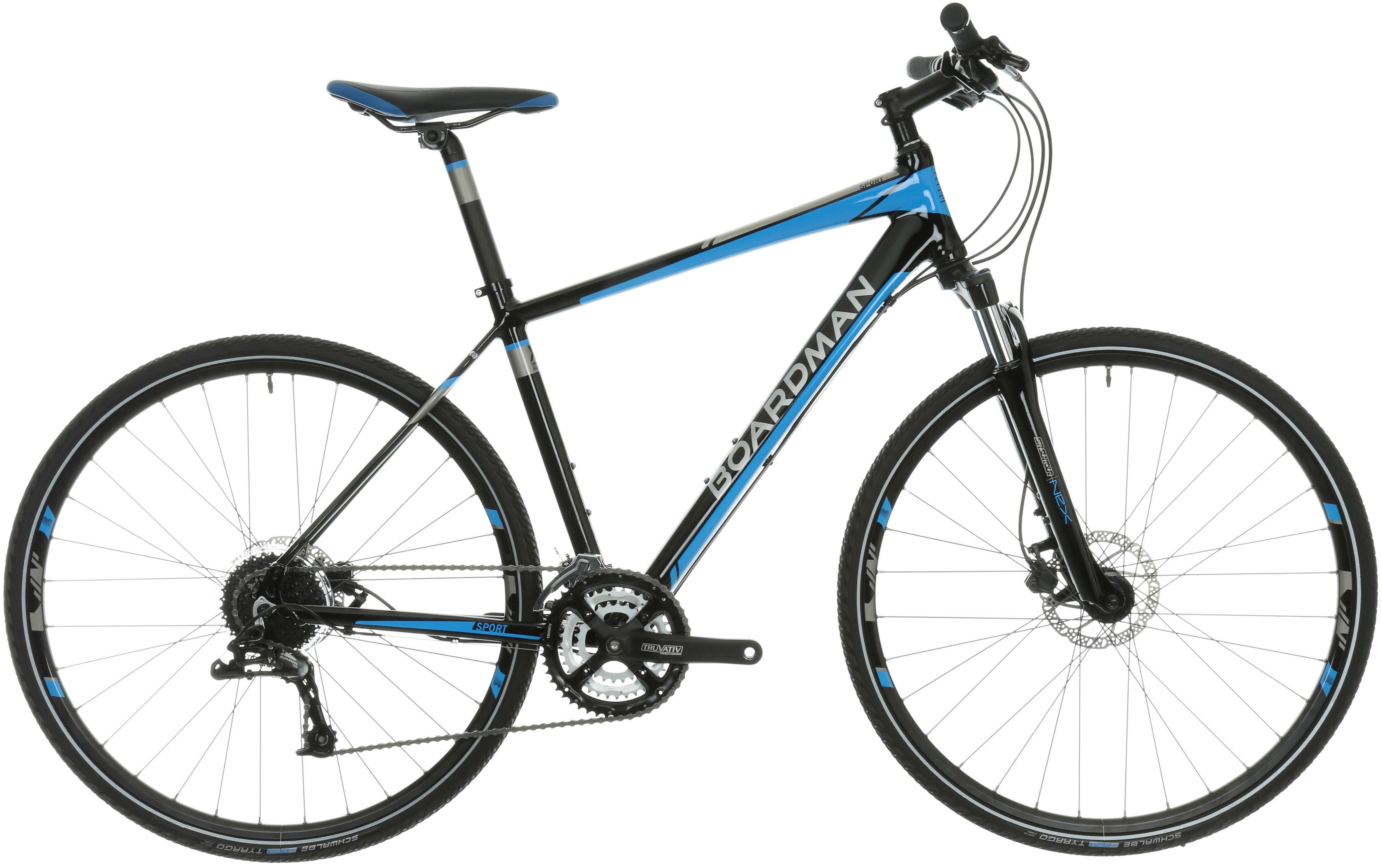 Coupled with a 63mm travel Suntour suspension fork that ensures a controlled and comfortable riding experience, whilst the 27 speed SRAM gearing and powerful Tektro hydraulic disc brakes mean the Boardman MX Sport is a great go anywhere, anytime all-rounder.