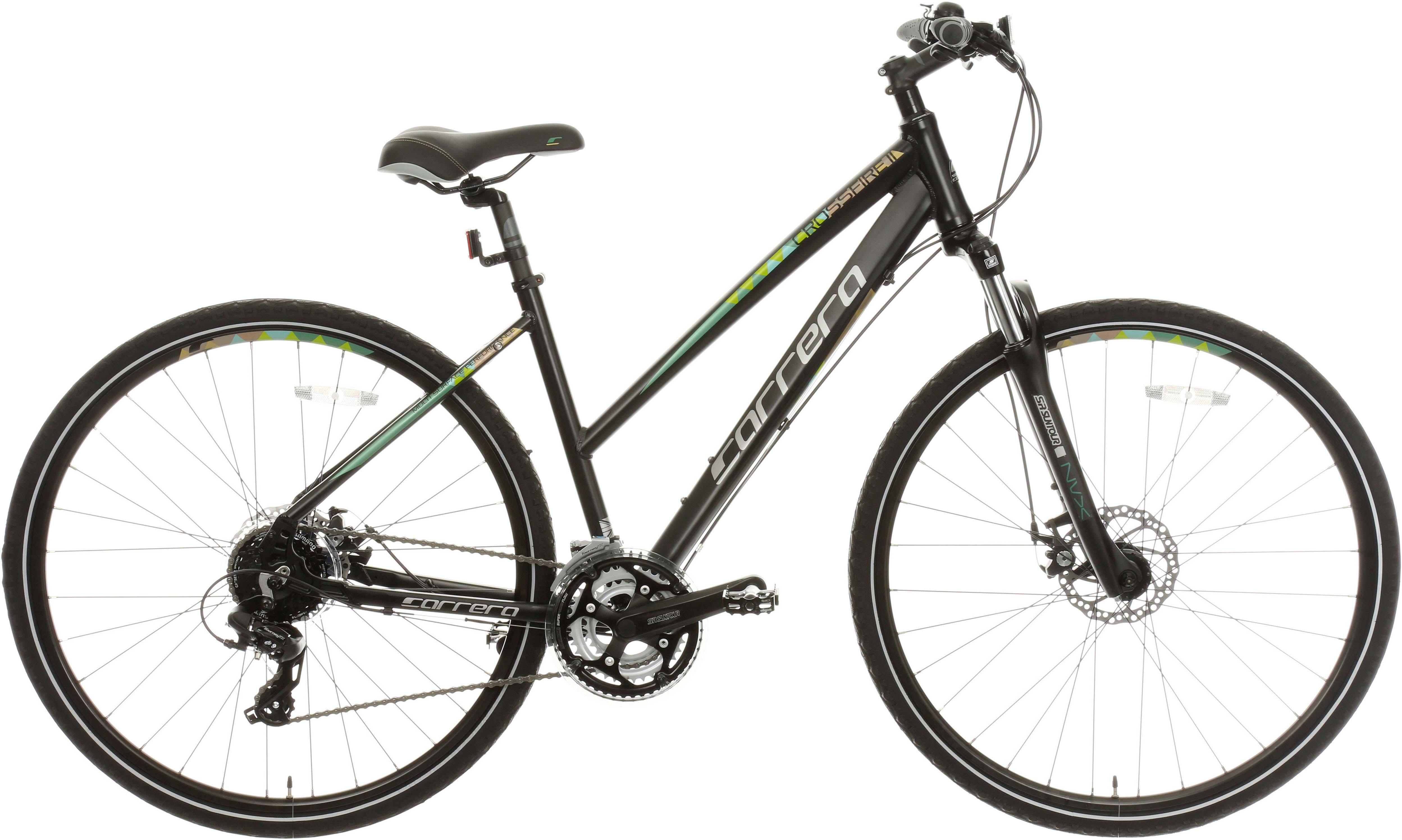 The Carrera Crossfire 2 Womens Hybrid Bike builds on the all-round performance qualities of the Crossfire 1. With a confidence inspiring riding style, the Crossfire 2 features mechanical disc brakes for controlled stopping in all weathers, and 24 speed Shimano gears for easier riding on hillier terrain.