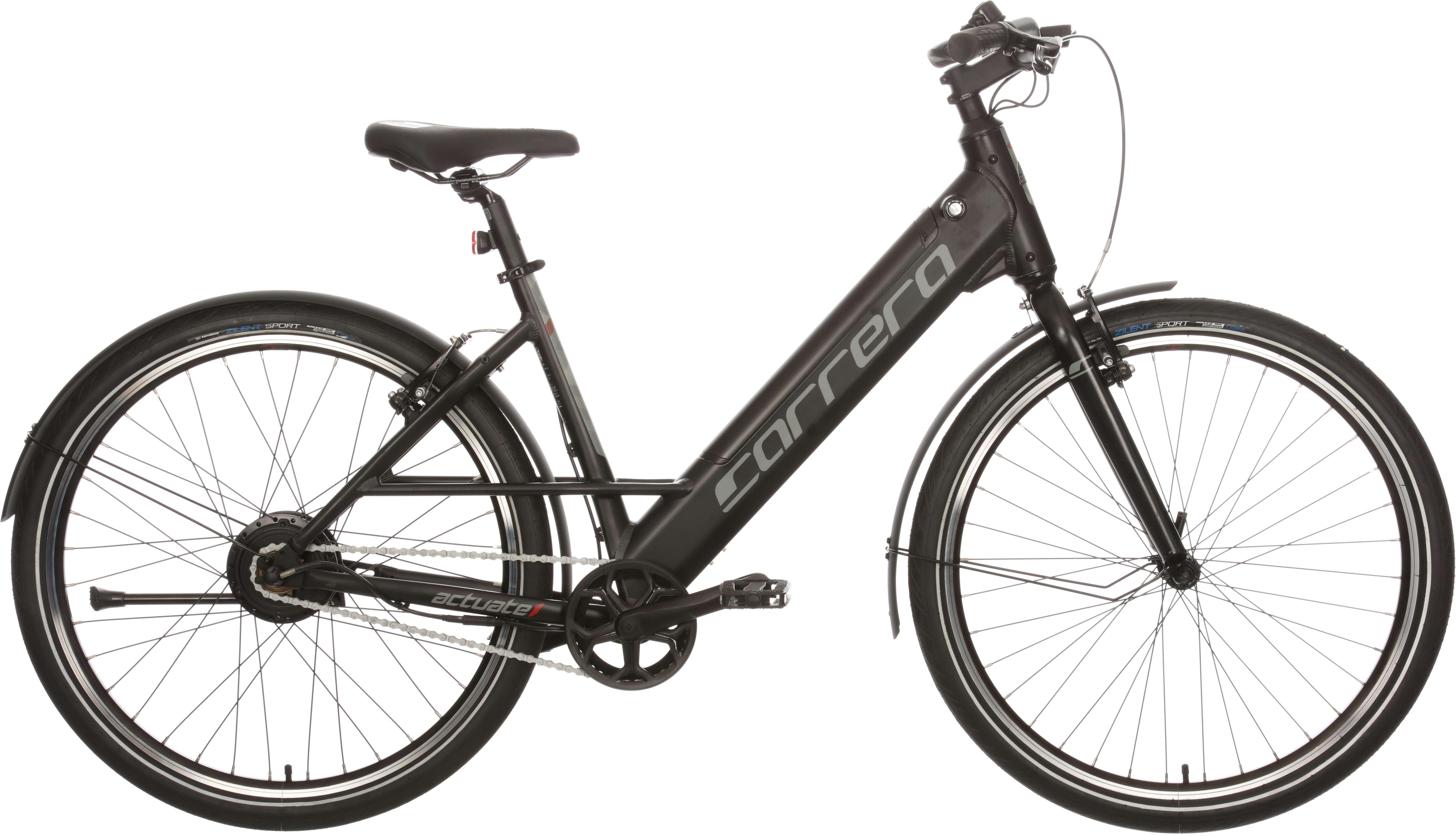 • The Carrera Actuate 1 is the ideal urban commuter, featuring an integrated battery, kickstand, mudguards and the ability to fit a pannier rack. Combined with the classic feeling step through frame the Carrera Actuate 1 becomes a commuters dream.