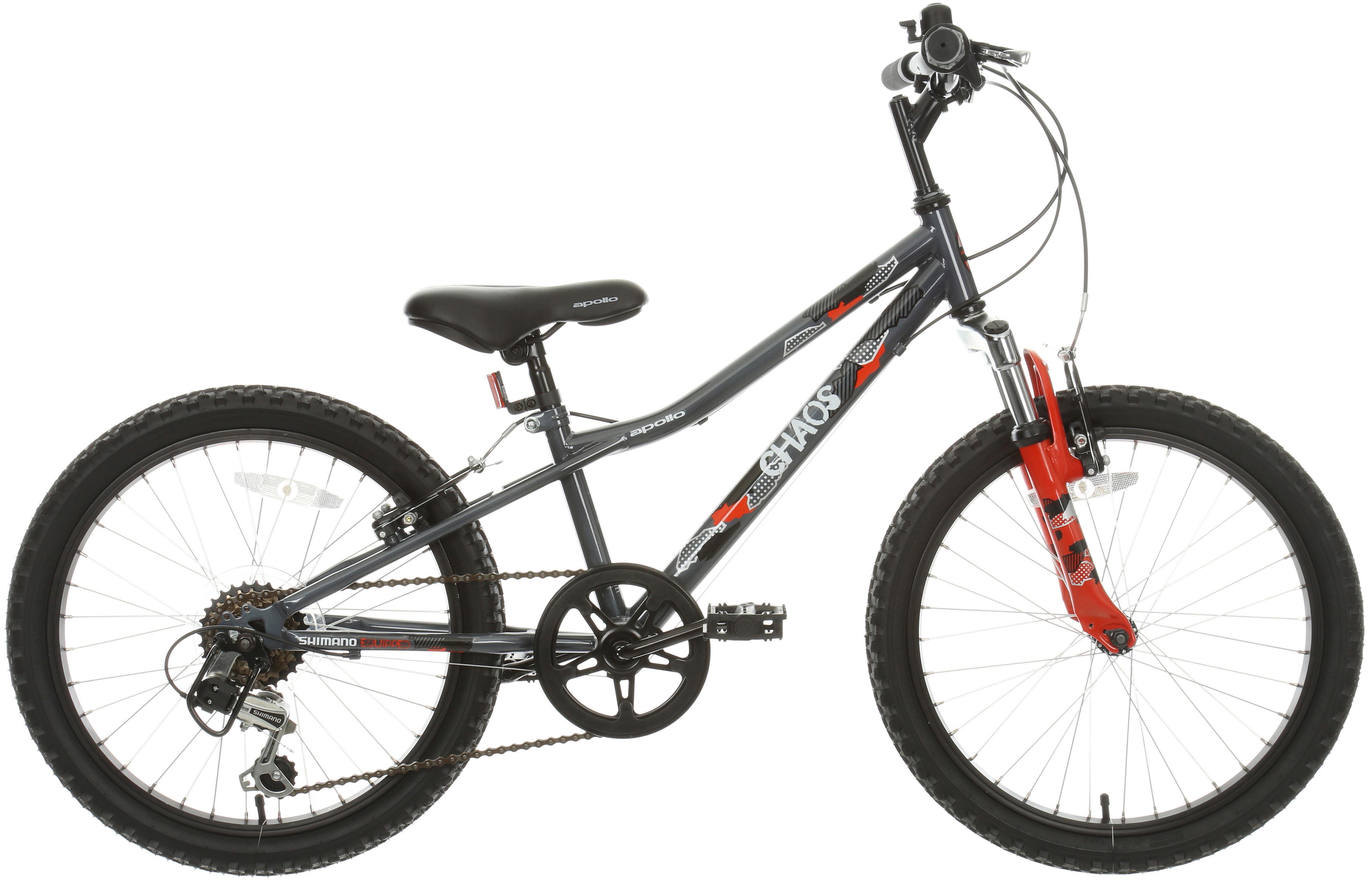 Make an impact on the Apollo Chaos Junior Mountain Bike - 20" Wheel - with its striking design and great features, it will really get you noticed! Enjoy tackling those off road trails with front suspension that absorbs the bumps you may encounter, with Shimano 6 speed gearing that lets you easily make your way uphill, before you enjoy racing all the way back down.