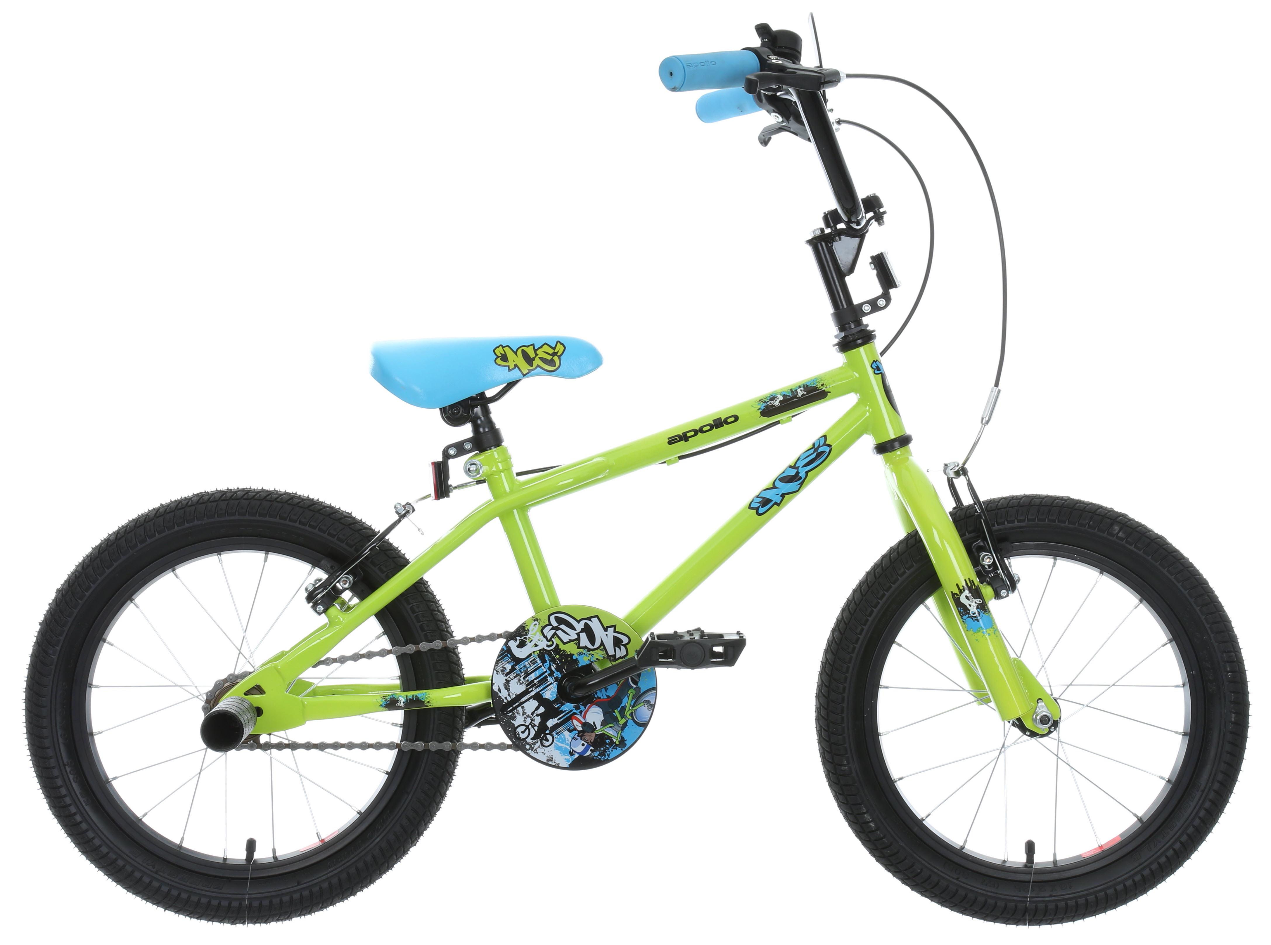 With its awesome marble coloured graphics and edgy style, the Apollo Ace Kids Bike - 16" Wheel will make any kid the king of the park. A BMX style frame and rear stunt pegs adds to its cool style, and strong alloy rims and powerful V-brakes ensures that this bike certainly lives up to its name!