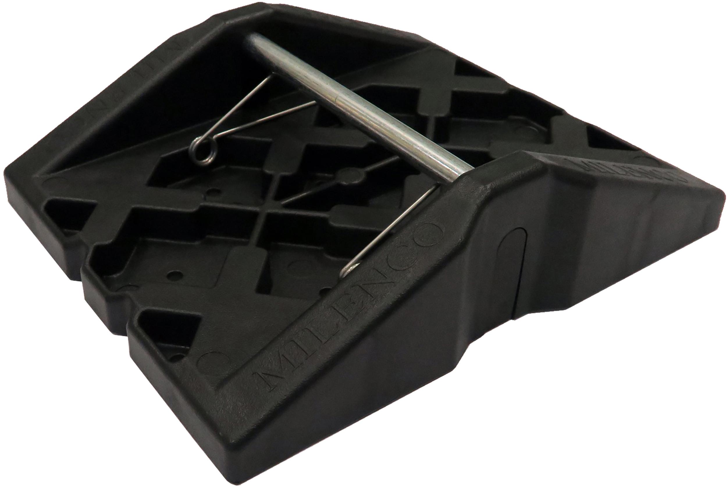The Milenco Stacka Corner Feet use a unique 'clip and lock' system incorporating a rattle proof stainless steel spring loaded design. They are high quality and durable with a robust steel retaining shaft.