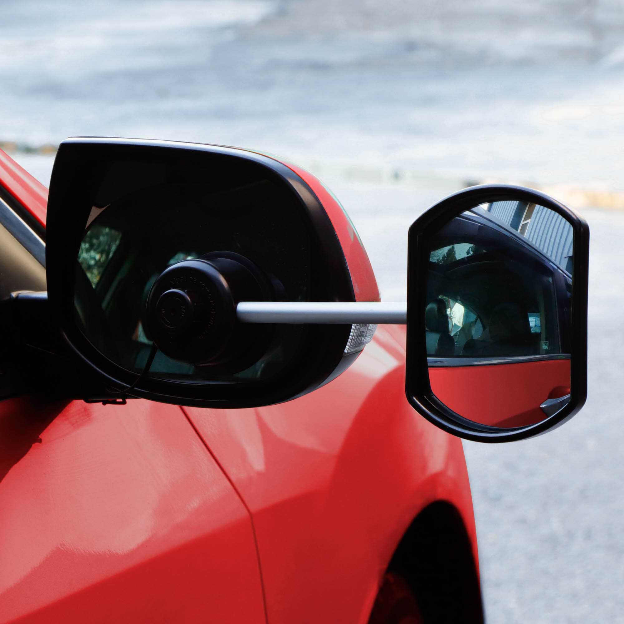 This mirror fits onto your existing wing mirror in a matter of seconds. This towing mirror features a flat mirror to provide a straight line of vision along the side of your vehicle.