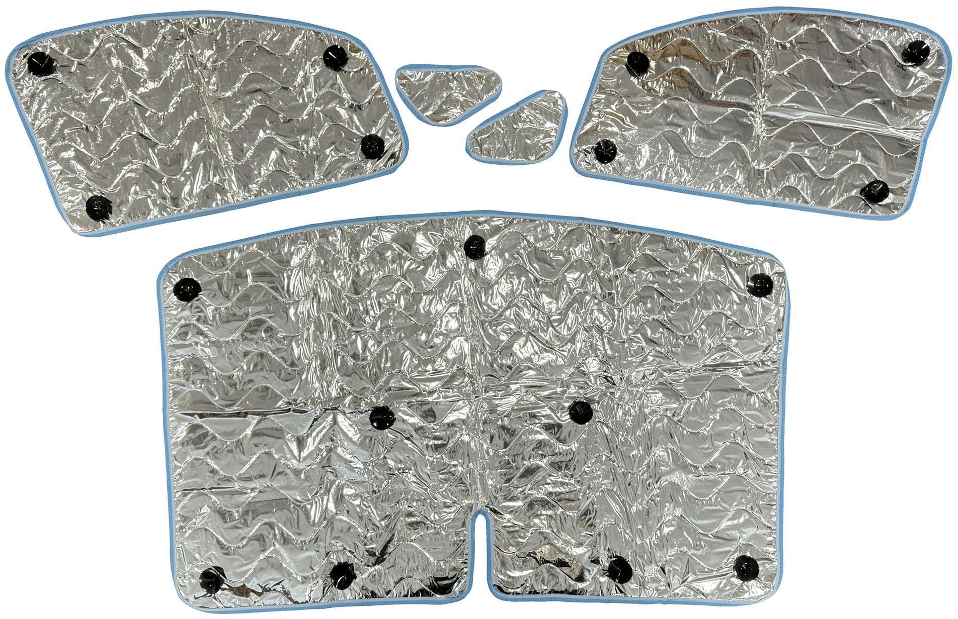 OLPRO's Internal Thermal Blinds are tailored for the VW Caddy Campervans and Vans 2003 to 2020. The five piece set covers the front windscreen and the two front cab side windows and has a stylish blue trim. They're easily fitted with the suction cups provided. The set is perfect for privacy and will cool the campervan in hot weather and keep it warm in cold weather. 5 Piece Set - 1 Front Windscreen, 2 Side Window Blinds and 2 Corner Window Pieces