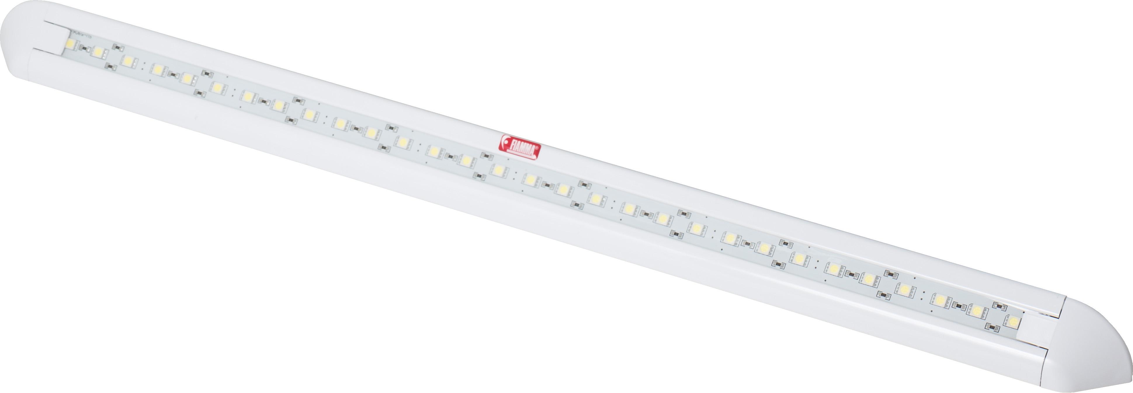 A bright external LED light for awnings. Made of solid painted aluminium and containing 31 LED lights, it can be affixed anywhere - under the case of your awning, above your caravan or motorhome door, or even inside cabinets for added visibility.