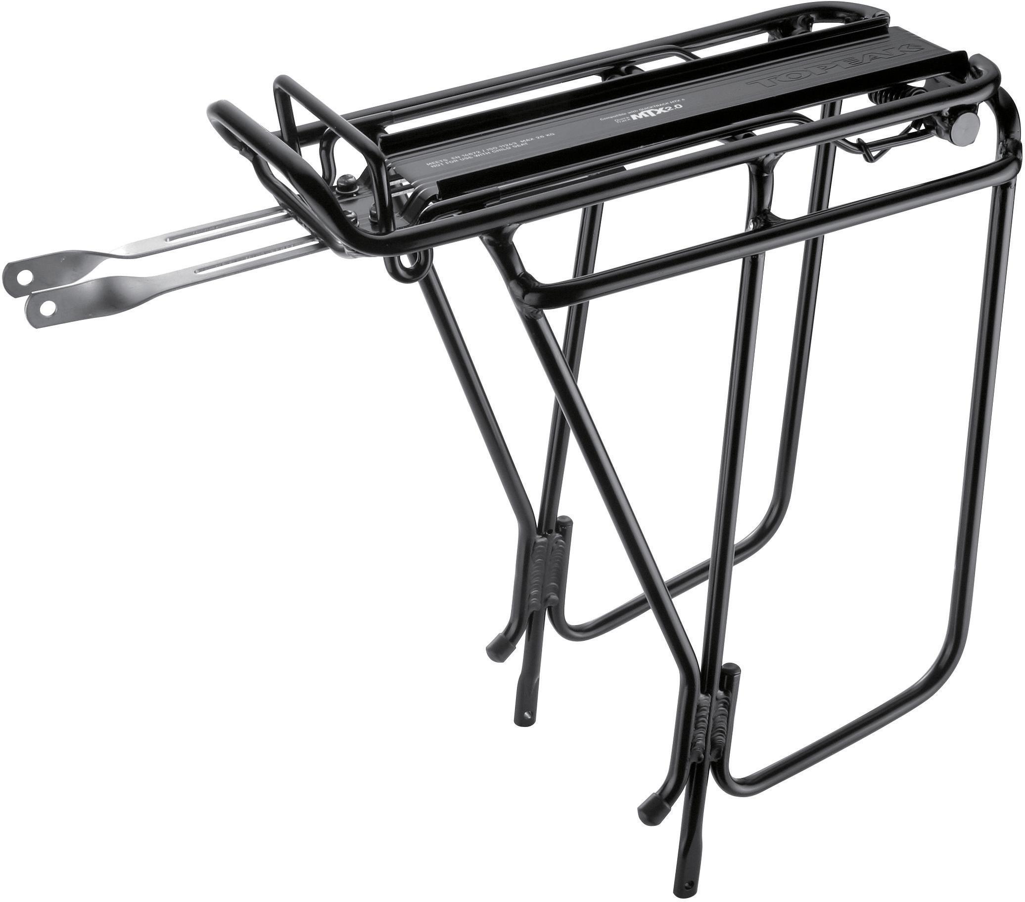 The Topeak Super Tourist DX 2.0 Rack Sprung Top is our toughest tubular aluminum rear rack designed for heavy-duty, long distance touring. Integrated side bar provides a lower pannier attachment point-allowing more space for cargo on the rack top. QuickTrack® compatible for use with any MTX TrunkBag, rear basket and pannier bag.