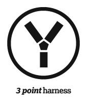 The child seat is EN14344 approved, with an adjustable 3 point safety harness.