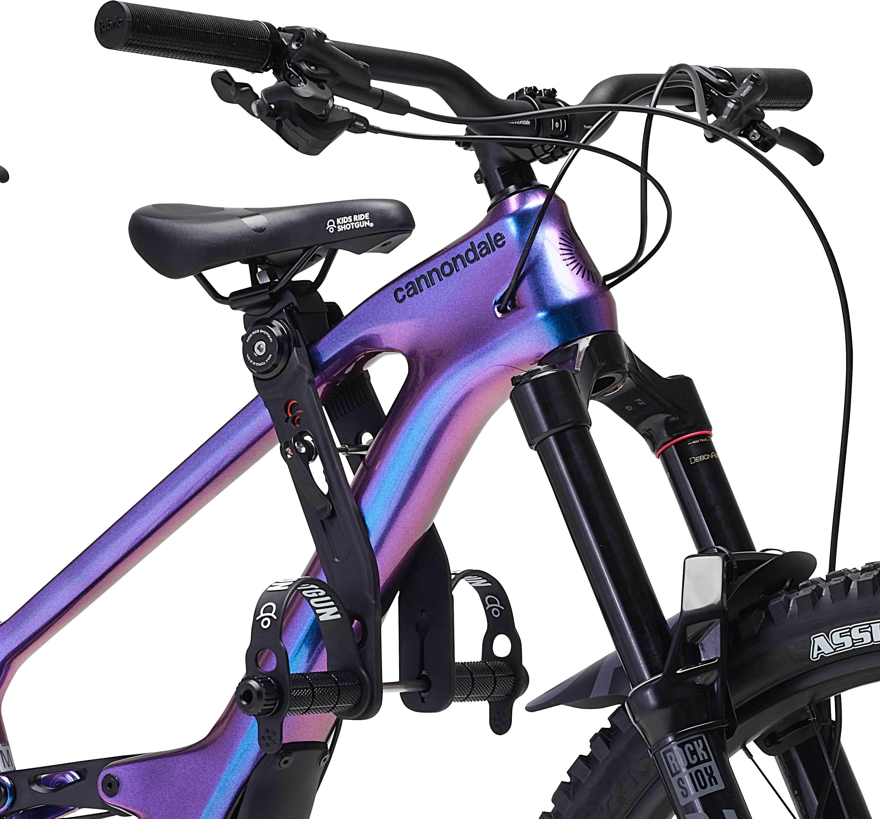 Once set up, the Shotgun 2.0 can be installed or removed in under 30 seconds. With two footpeg positions, the Shotgun 2.0 seat grows as your child does. With thick rubber padding, the Shotgun 2.0 is safe to use on carbon or alloy frames.