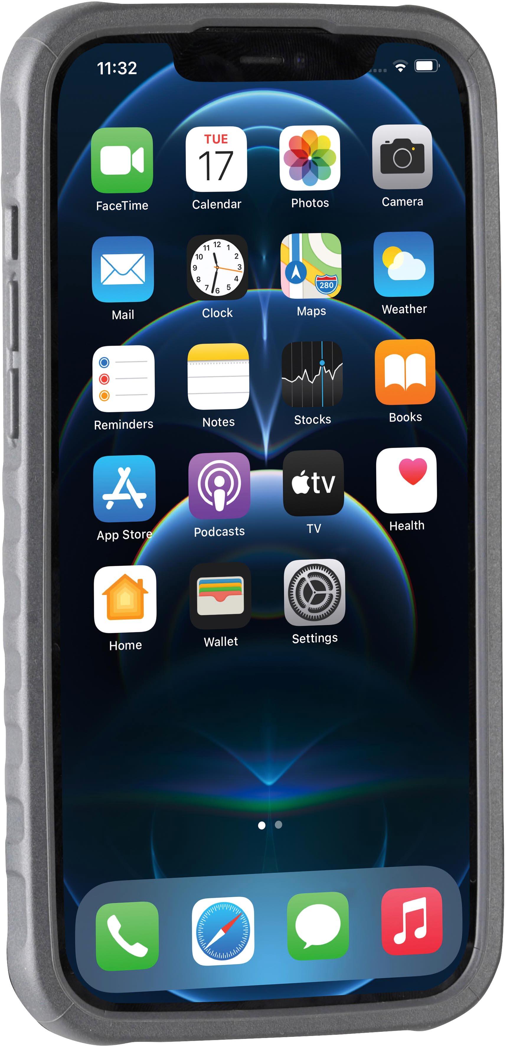 Holds your phone securely while on the go. Its full angle adjustment allows viewing in portrait or landscape modes and an Integrated flip stand for post-ride hands-free viewing. Compatible with Lightning cable charging.