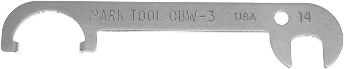 The Park Tool OBW-3 is a specialty wrench designed for the installation and adjustment of side-pull and dual-pivot rim brakes. Its unique offset design and thin profile (2.1 mm thick with 6.5 mm fingers) allow it to access tight places where standard wrenches would be impractical.