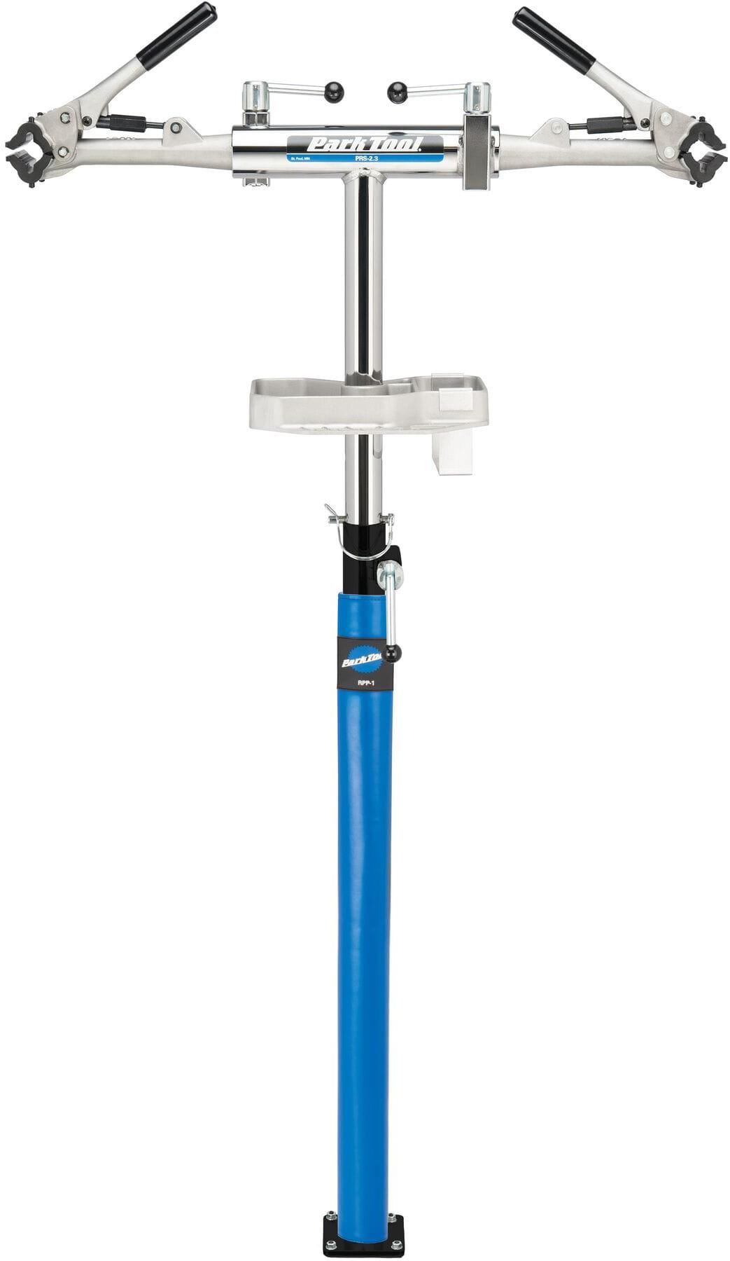 The Park Tool PRS-2.3-1 Deluxe Double Arm Repair Stand has been the standard of the bike industry for over 40 years. The Park Tool PRS-2.3-1 Deluxe Double Arm Repair Stand With 100-3C Clamps, clamps two bikes and rotates horizontally 360 degrees, allowing one bike to be swung out of the way to work on another.