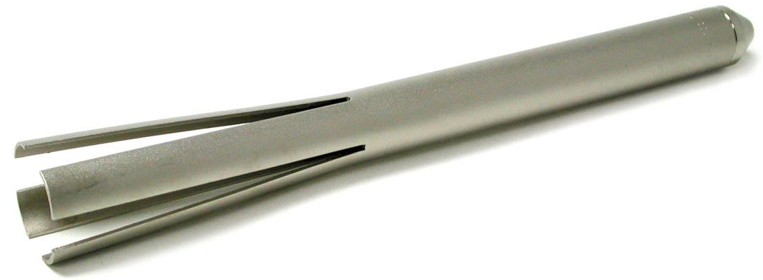• Pulls through headtube until the flared end snaps open behind the headset cup