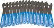 Precision sizing and a military-grade industrial phosphate finish ensure an accurate fit and consistent quality. Thin enough to use on the narrowest of adjusting cones, our Shop Cone Wrenches have a long, vinyl-dipped handle for leverage and comfortable use. The SCW-SET.3 includes all 14 wrench sizes currently produced by Park Tool, covering all sizes found on bicycle hubs.