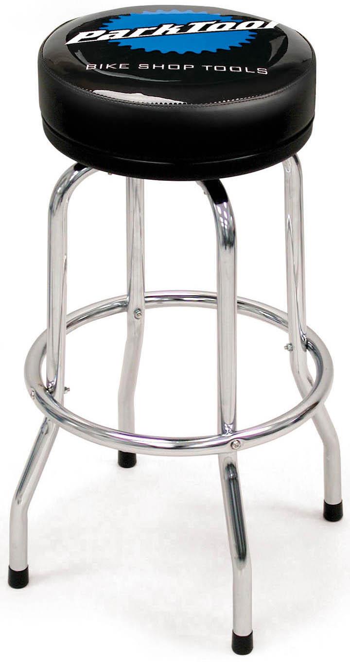 The STL-1.2 is the perfect height for wheel truing or other work at a bench or counter. Features chrome-plated steel legs and a comfortable padded seat with a three-color Park Tool logo. Great in the shop or on the sales floor.