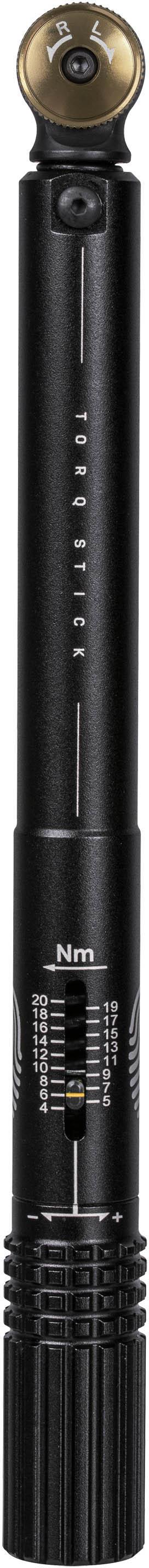 Torque wrench with adjustable preset range of 4-20Nm features a standard hex drive reversible ratcheting head.