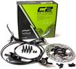 The CRS C2 2 piston hydraulic disc brake, provides the rider with a powerful, strong brake set, featuring full adjustment and modulation. Each calliper has self- adjusting pistons with machined piston heads for reduced friction operation. Heat dissipation features designed into the rotor, work in conjunction with the calliper, keeping brake performance consistent and in-turn helping to reduce pad wear. Lightweight 2 finger brake levers offer controlled, sensitive braking with lever reach adjustment and comfortable ergonomic lever blades. The C2 is supplied with aerospace grade aluminium floating rotors with stainless steel braking bands, hoses and mineral oil.