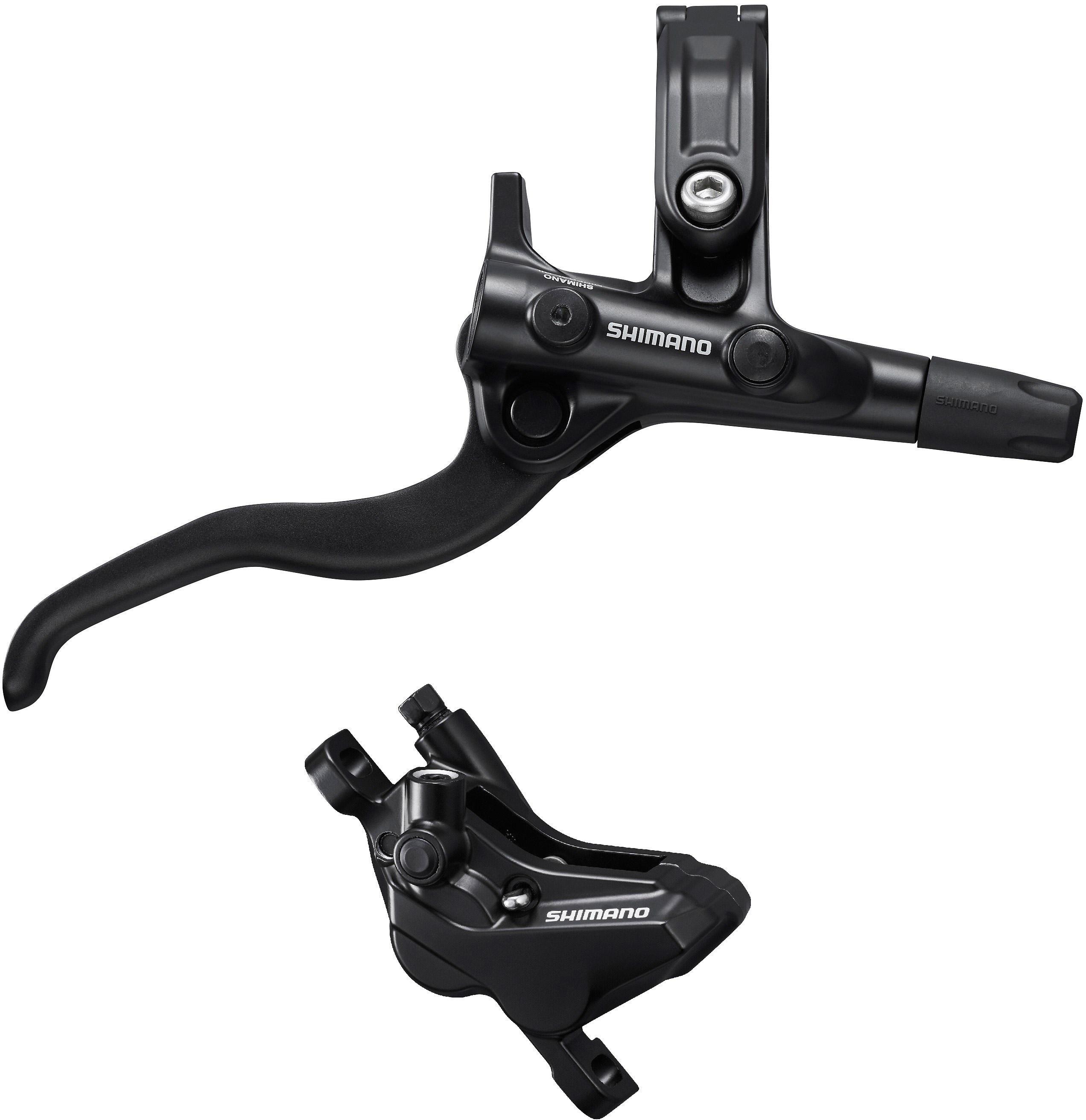 Shimano Deore BR-MT420/BL-M4100 fully bled hydraulic disc brake with easily adaptable post-style calliper.