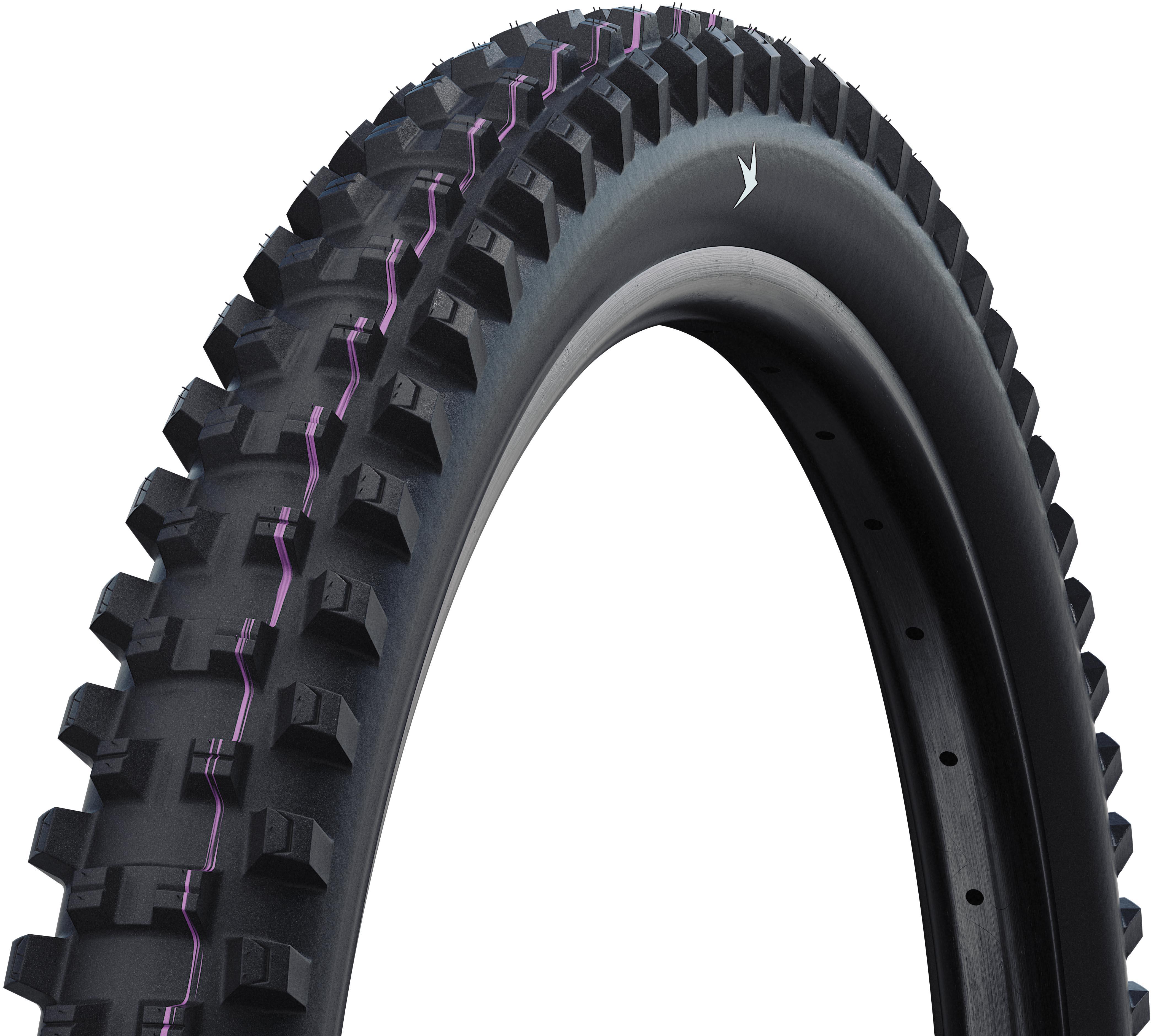The new Shredda features the new Schwalbe radial carcase construction, taking its performance to another level. The radial construction allows for a much greater degree of flexibility within the carcase so the tyre can conform to the trail irregularities much better than a conventionally constructed tyre. This means that higher pressures can be run to provide better pinch-flat protection whilst still providing greater compliance for much improved levels of grip and damping. Suitable for MTB and E-MTB bikes.
