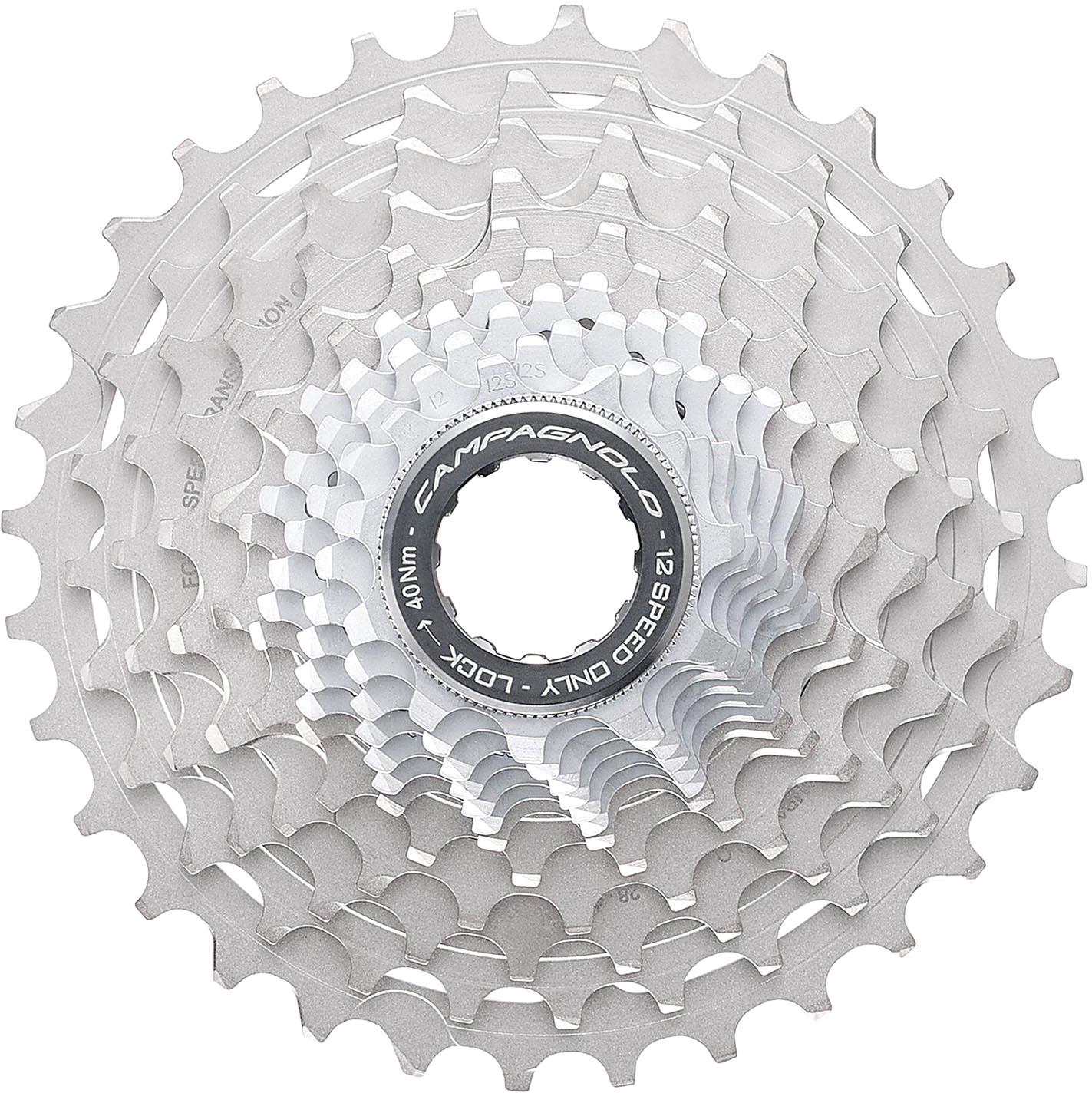 When researching other 12-speed equivalents on the market, they found an incredible amount of flex due to the single ring set up of the cassette. Campagnolo cassettes are fixed to a spline to offering greater rigidity and smoother shifting. The cassette's last two triplets are CNC'd out of one piece of hardened steel for optimum stiffness Alloy spacers have been used for improved durability and weight saving.