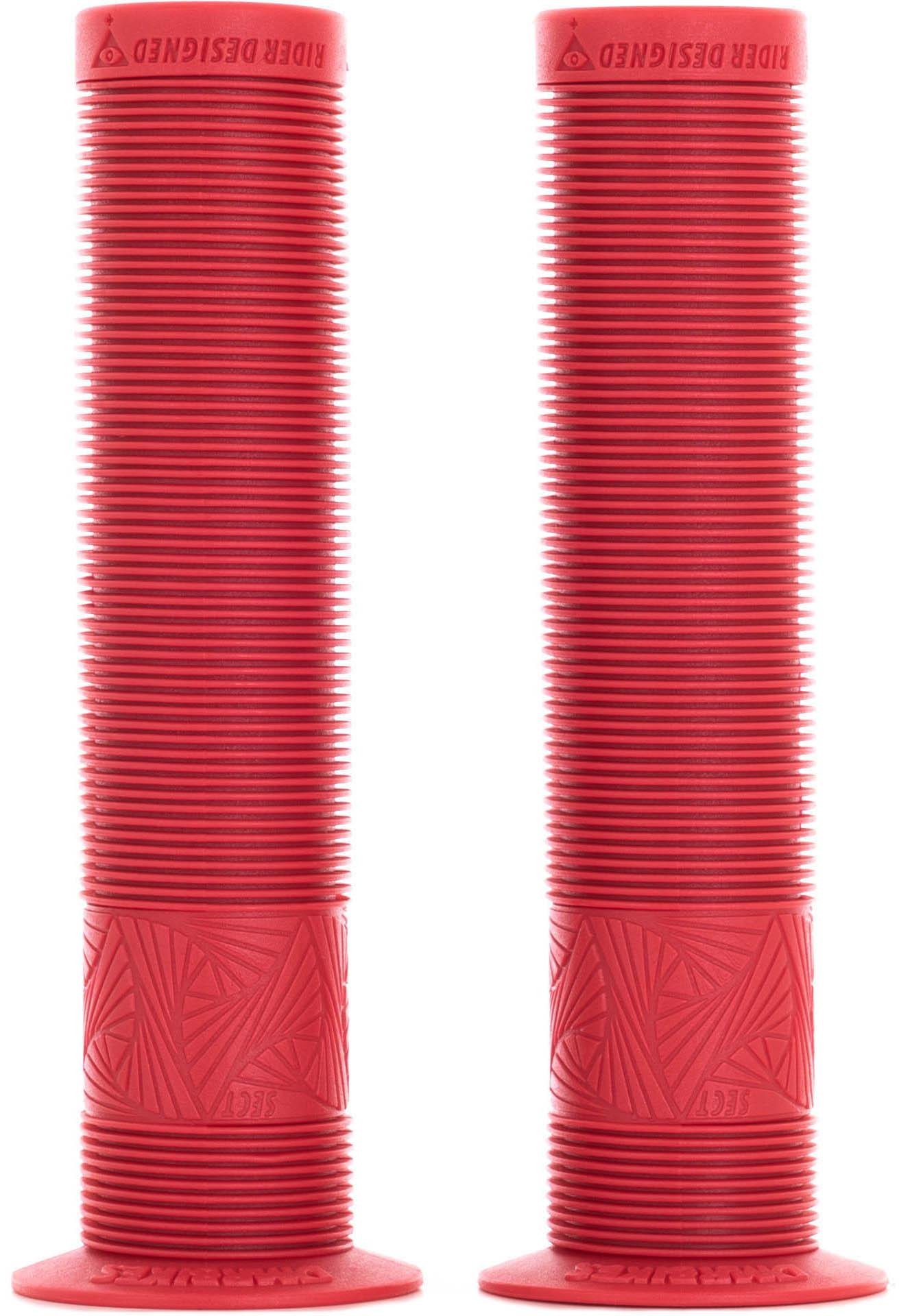 DMR took the classic mushroom design and added a thumb patch where previous mushroom grips wear-out first. Then also took out the bulge at the end of our DMR Sect grips so you can catch the bars right at the end of the grip and still finish the line.