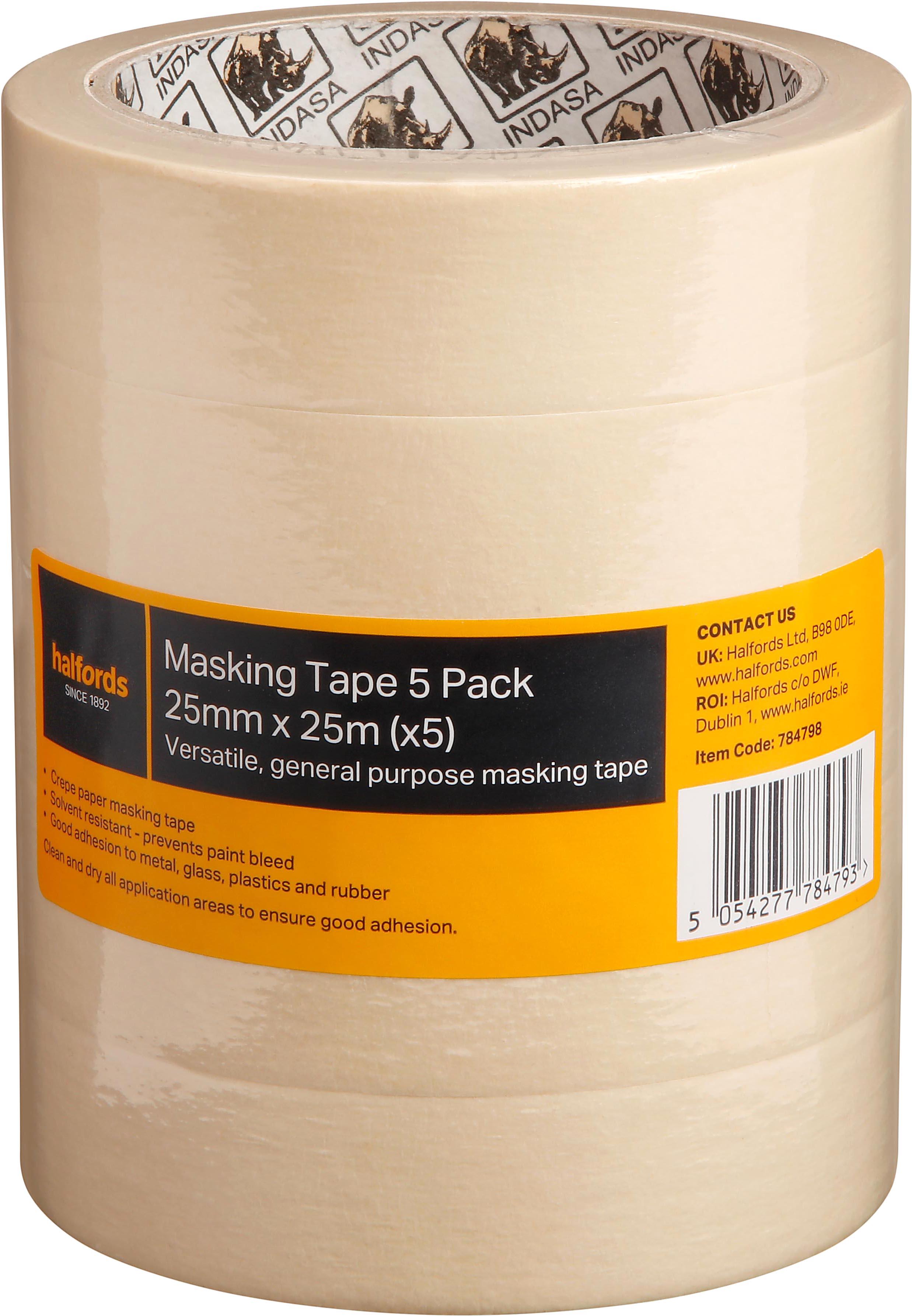 The Halfords Masking Tape Multi-pack consists of five 25mmx25m rolls. They are high quality tapes, ideal for general masking applications and are must-have products for any DIY vehicle repairer.