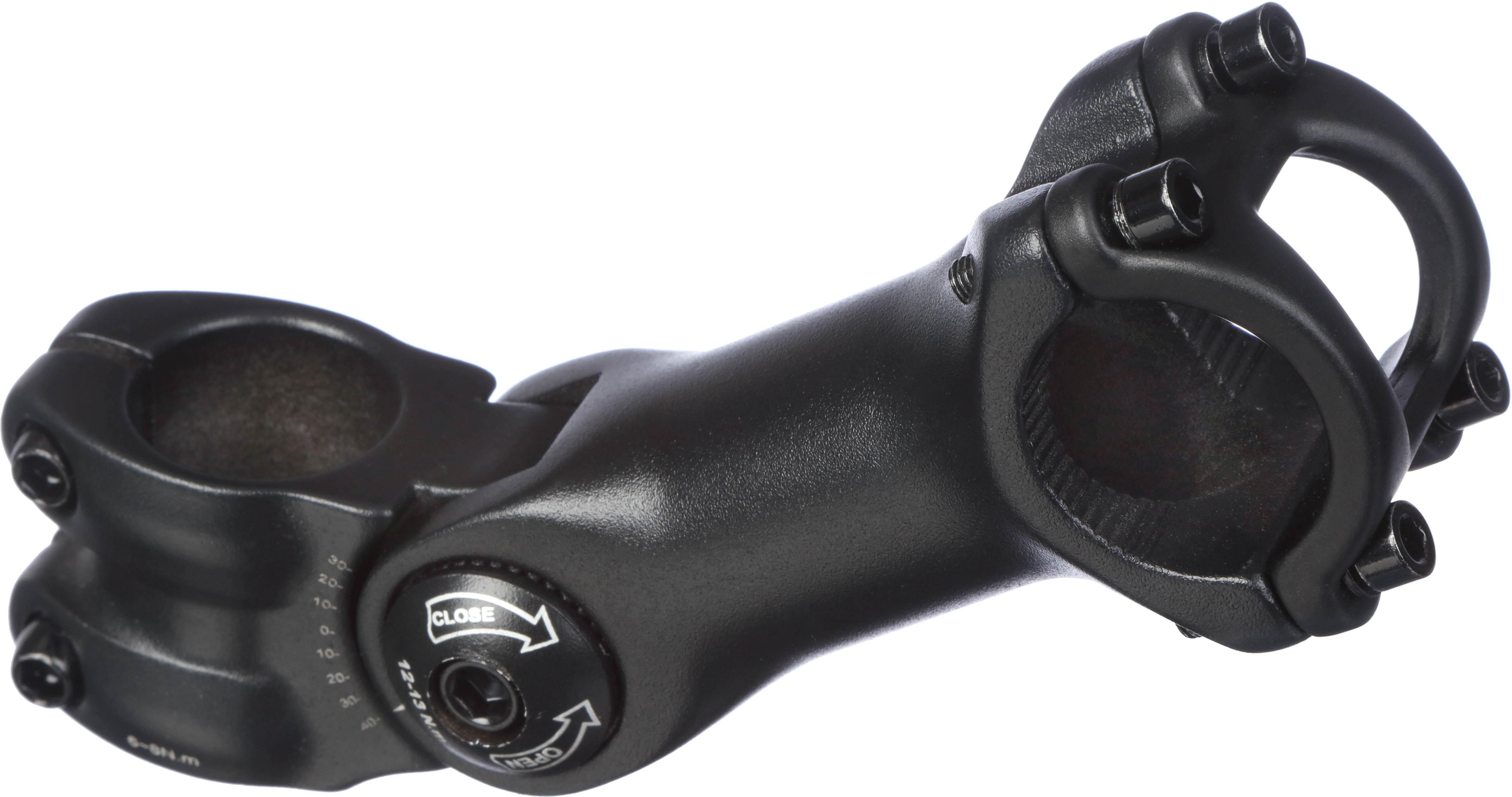 The Halfords Adjustable stem has been designed for fine tuning the handlebar position on the bike. The angle adjustment range of -30-degrees to +40-degrees allows riders to raise the height of the handlebars for a more upright riding position and closer reach, bringing the handlebar within a more comfortable range. Alternatively, the stem can be tilted downwards for a lower, more performance-oriented position.