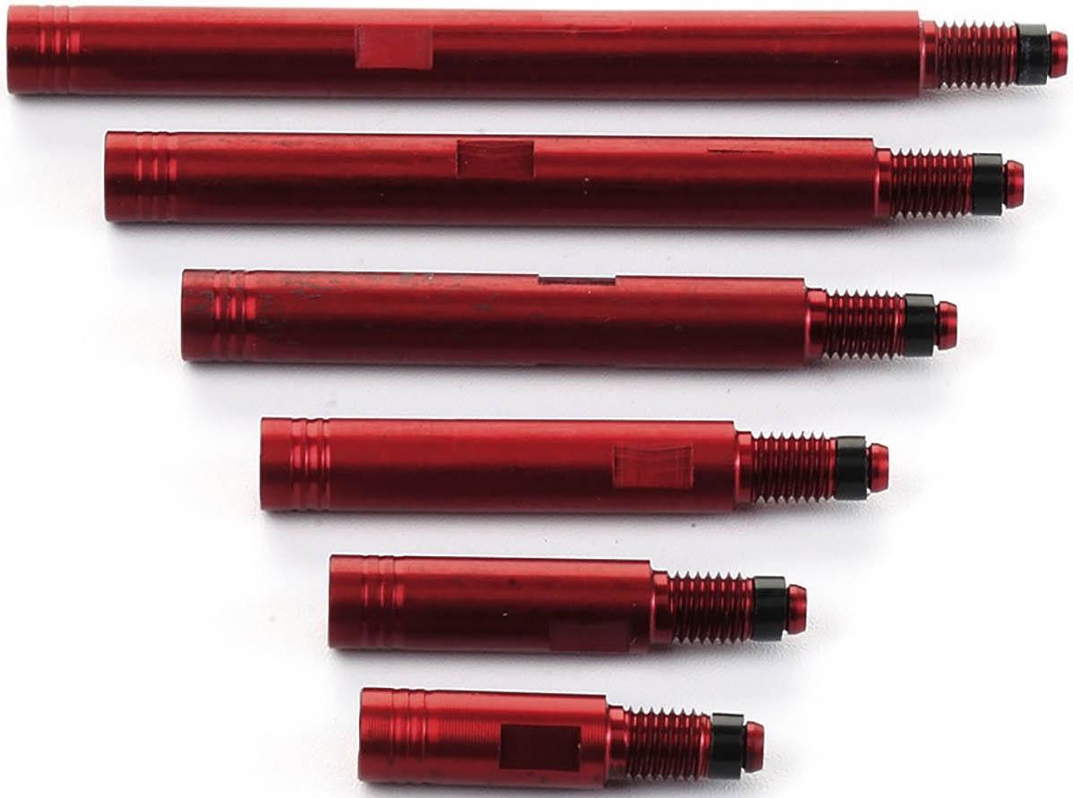 Lightweight CNC alloy valve extenders, red anodised for a durable finish. For use with tubs or tubes with removable valve cores.