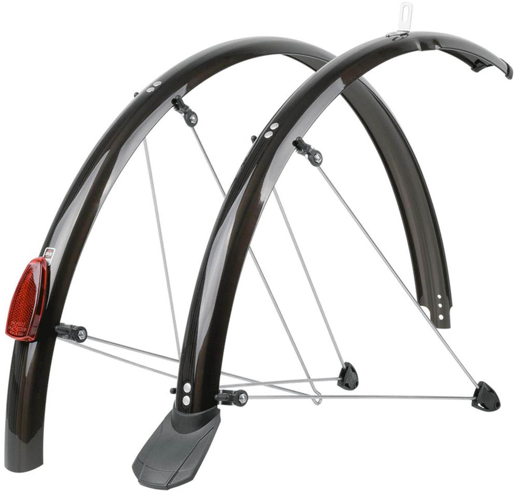 The classic, and still the best full coverage mudguard. Complete set for front and rear with traditional and unmistakable decorative stripes. Reflector and spoilers included. Available in a wide range of sizes.
