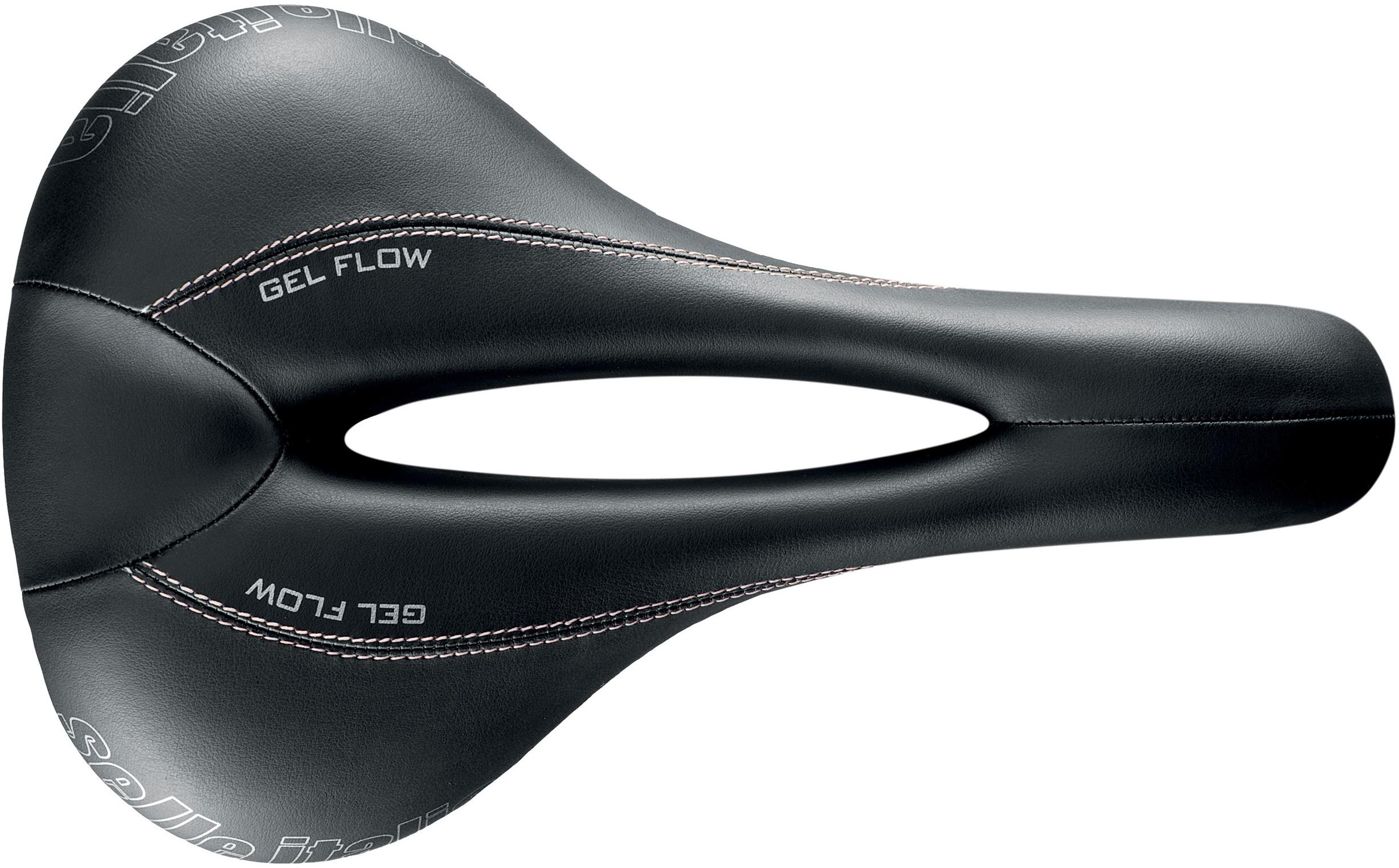The special anatomical Flow cut ensures excellent seating comfort by offering flexibility in the central part of the saddle