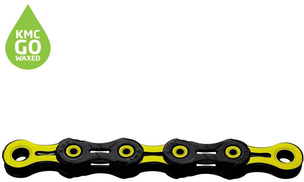 KMC DLC11 Waxed 11 Speed Chain, 118L, Black/Yellow