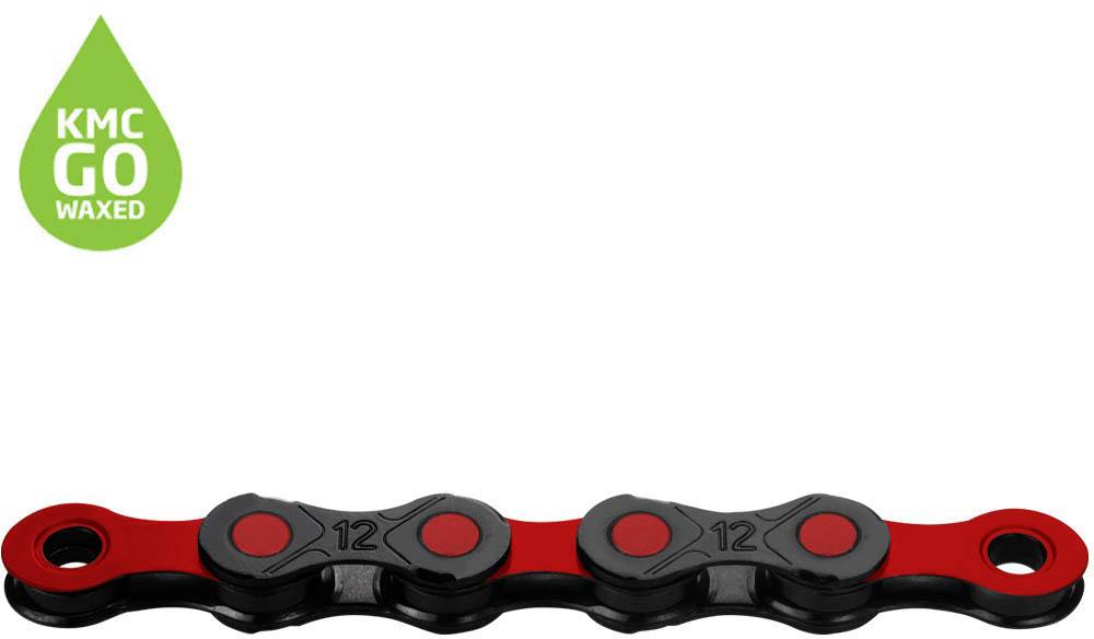 KMC DLC12 Waxed 12 Speed Chain, 126L, Black/Red