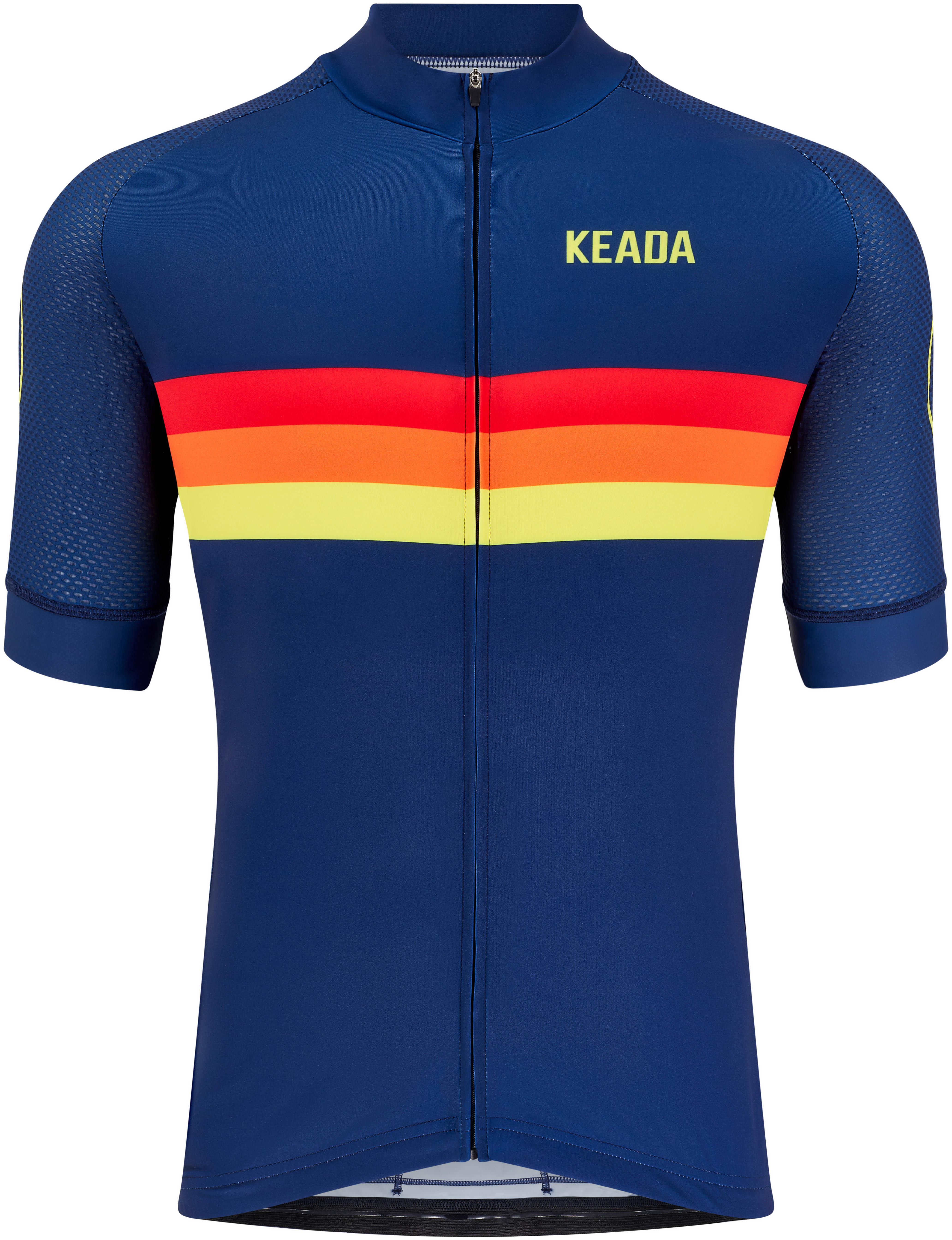 Our Sunrise Jersey maintains the Keada aesthetic details but a straight-forward block colour. The Keada word-mark is featured on both arms in a signature circle and on the left breast of the jersey. The Keada crest logo is then featured at the top of the neck line.