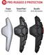 - Body-mapped, impact-absorbing SmartFlex pads are flexible in use and harden on impact providing superior protection