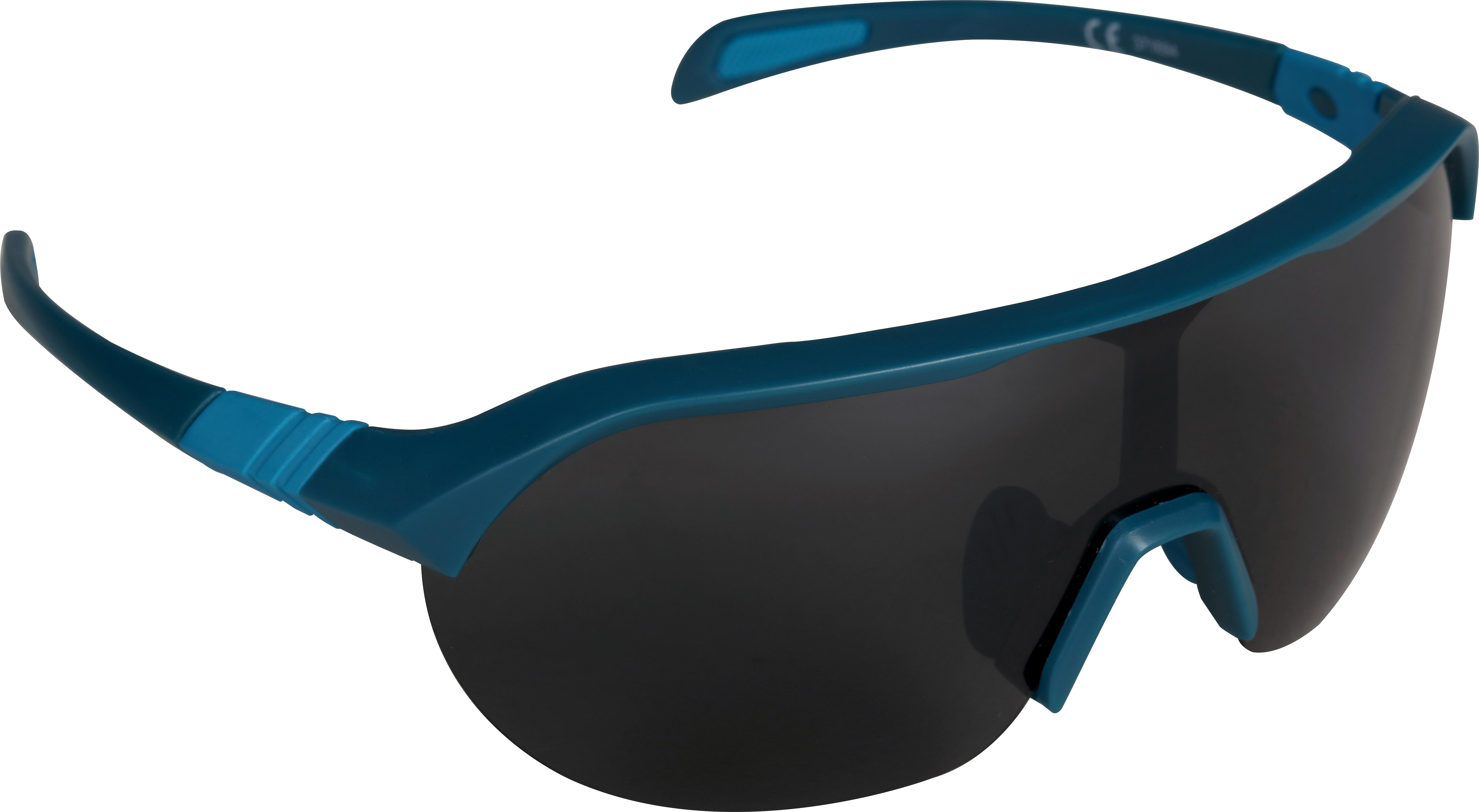 Halfords Half Frame Polarised Sunglasses in Black and Blue offers 100% UV protection. The dark shaded  lens and face hugging shape also helps to  protect you against wind whilst out riding in normal to bright light conditions, and anti fog helps to prevent the lens from misting up. Rubber grips on the arms also help to prevent the sunglasses from slipping off your face. Polarised finish will also help to reduce sun glare, and provide visual clarity in bright conditions.
