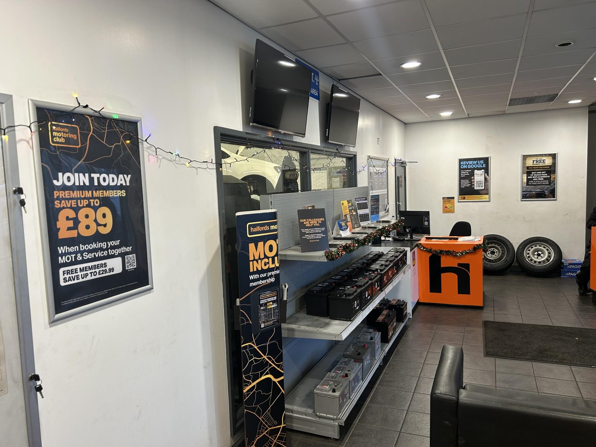 At your Halfords Crawley garage, we offer a range of vehicle services, including MOTs, interim, full and major servicing, tyres and repairs. Appointments can be booked easily online or by phone, and we always do our best to fit customers in as soon as possible.Garage facilities