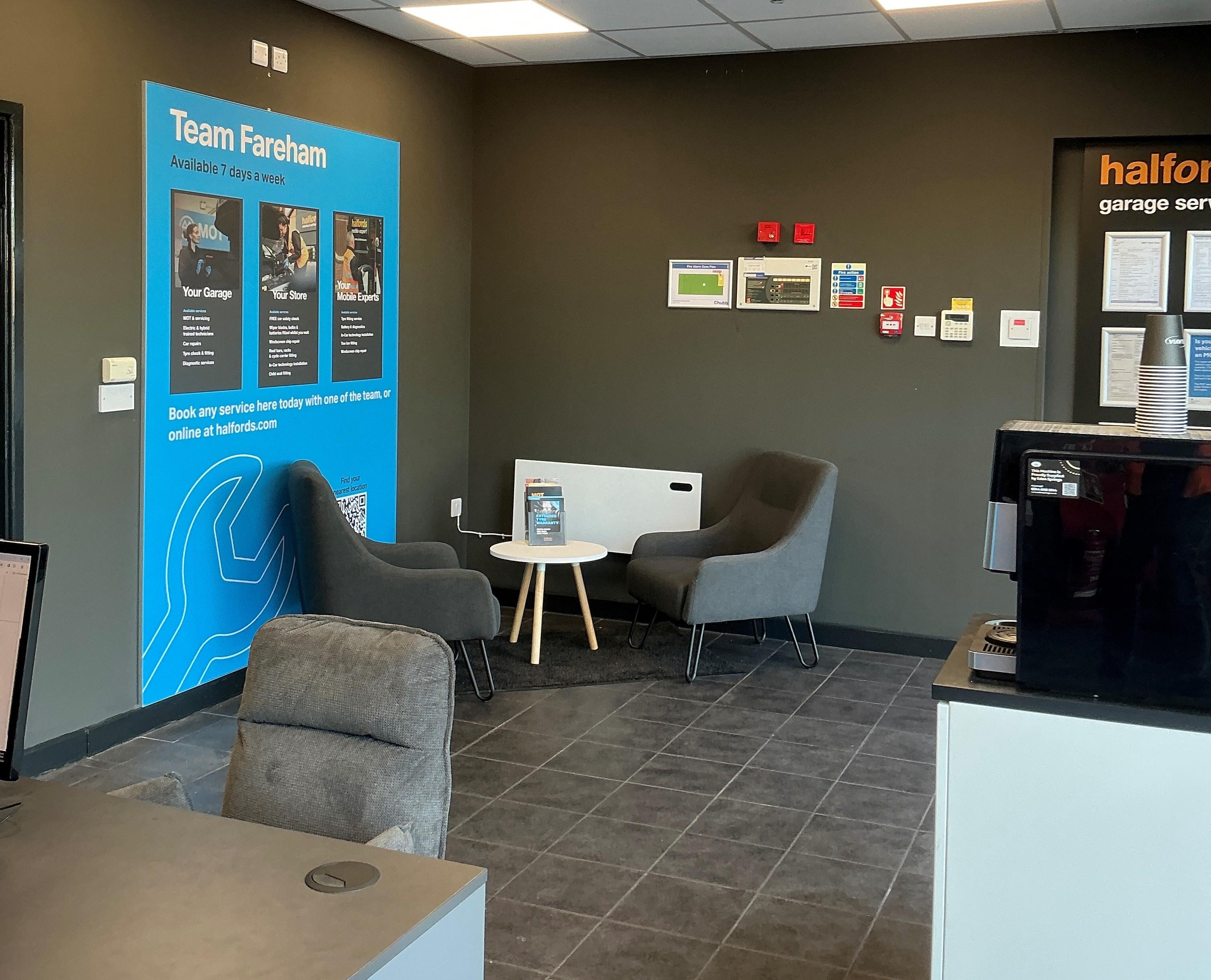 At your Halfords Fareham garage, we offer a range of vehicle services, including MOTs, interim, full and major servicing, tyres and repairs. Appointments can be booked easily online or by phone, and we always do our best to fit customers in as soon as possible.Garage facilities