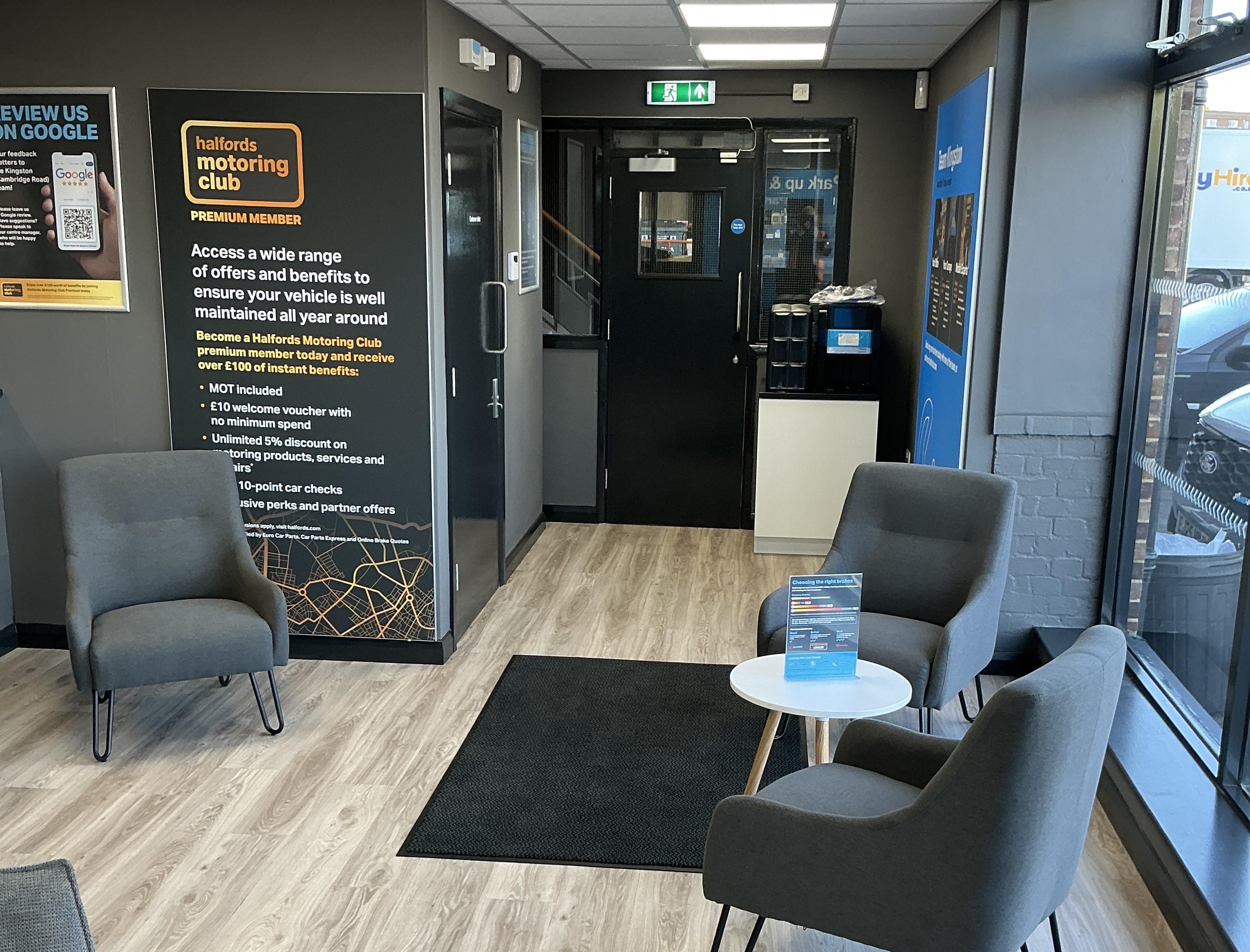 At your Halfords Kingston Cambridge Rd garage, we offer a range of vehicle services, including MOTs, interim, full and major servicing, tyres and repairs. Appointments can be booked easily online or by phone, and we always do our best to fit customers in as soon as possible.Garage facilities