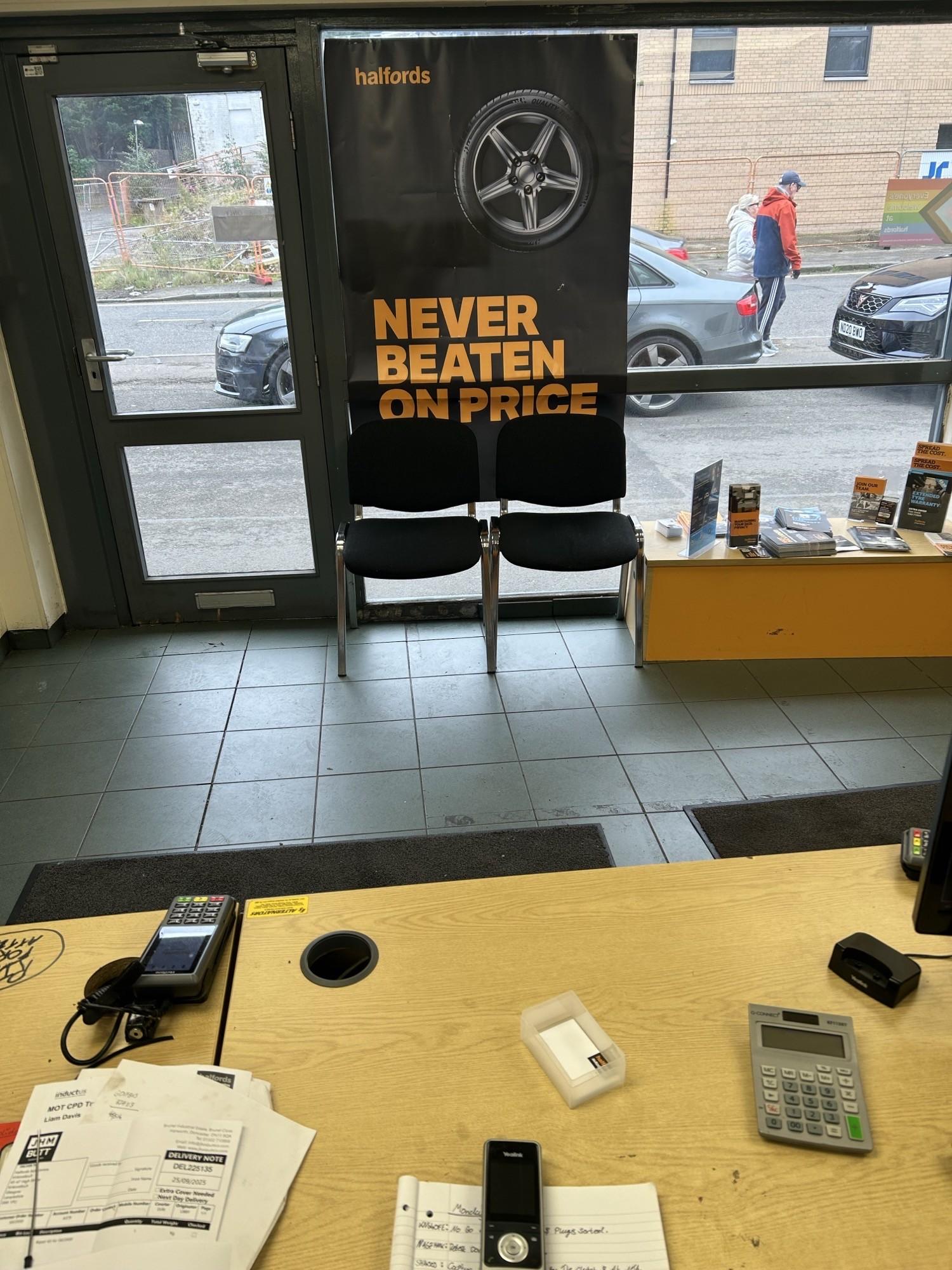 At Halfords Kirkintilloch, we offer MOTs, interim, full and major servicing, tyres and general repairs, expert diagnostics and vehicle checks. Booking is simple online or by phone, and we’ll always do our best to accommodate same-day appointments where possible, depending on parts availability and current bookings.Garage facilities