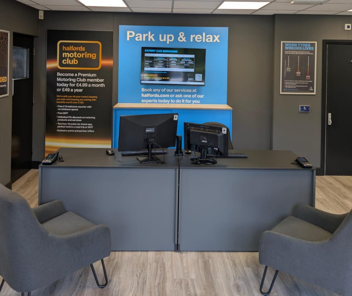 At Halfords Garage Services Leicester we’re ready for MOTs, car servicing (including major, full and interim services), repairs and (of course) tyre replacement and repairs. Whether you need an MOT, new battery or whole set of tyres we can accommodate you. Book online or call us today.Garage facilities