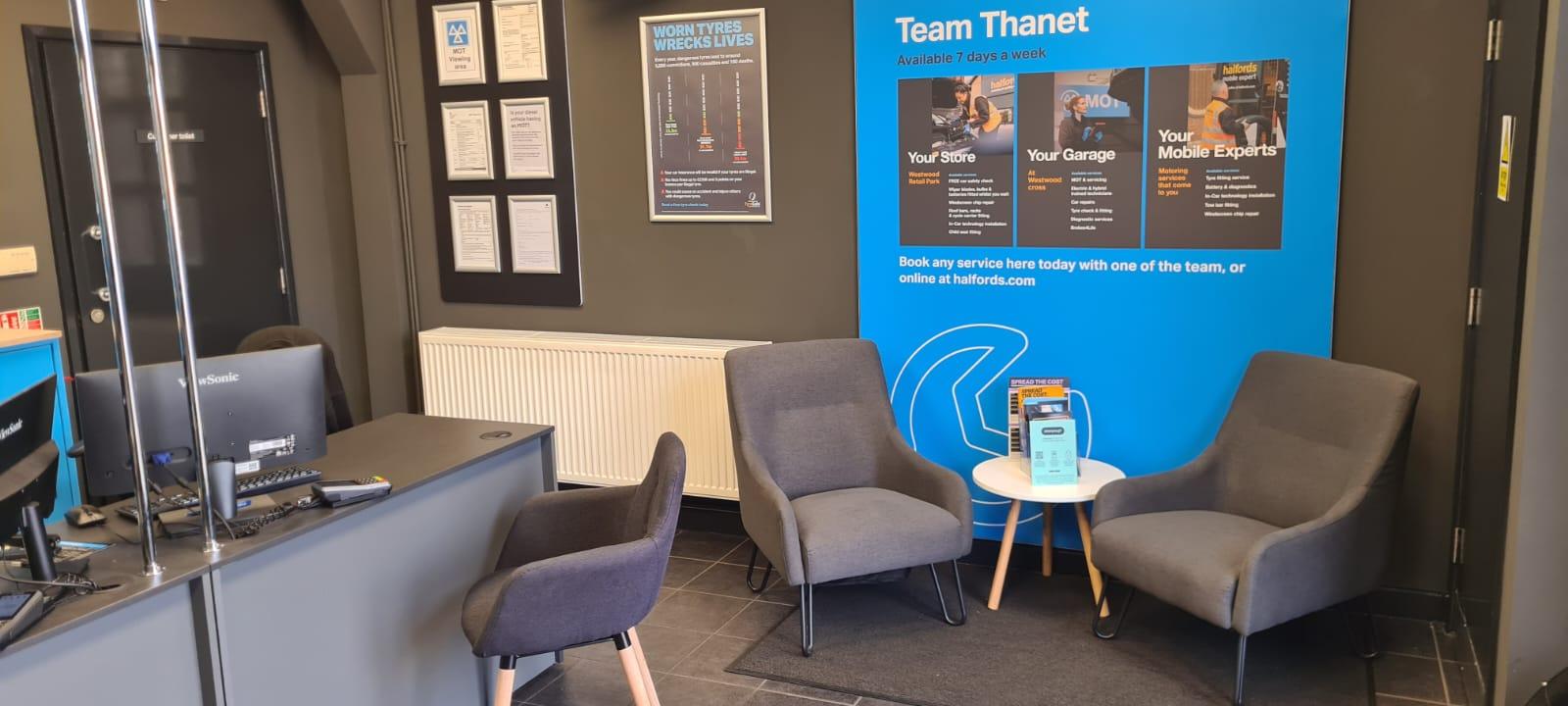 At your Halfords Thanet garage, we offer a range of vehicle services, including MOTs, interim, full and major servicing, tyres and repairs. Appointments can be booked easily online or by phone, and we always do our best to fit customers in as soon as possible.Garage facilities