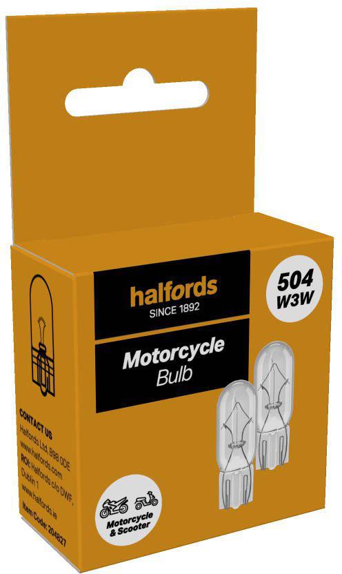 The Halfords 504 Motorcycle Bulb Twin Pack is the perfect replacement for old bulbs to keep you safe on the road. Enjoy brighter, stronger beams and longer lasting light.