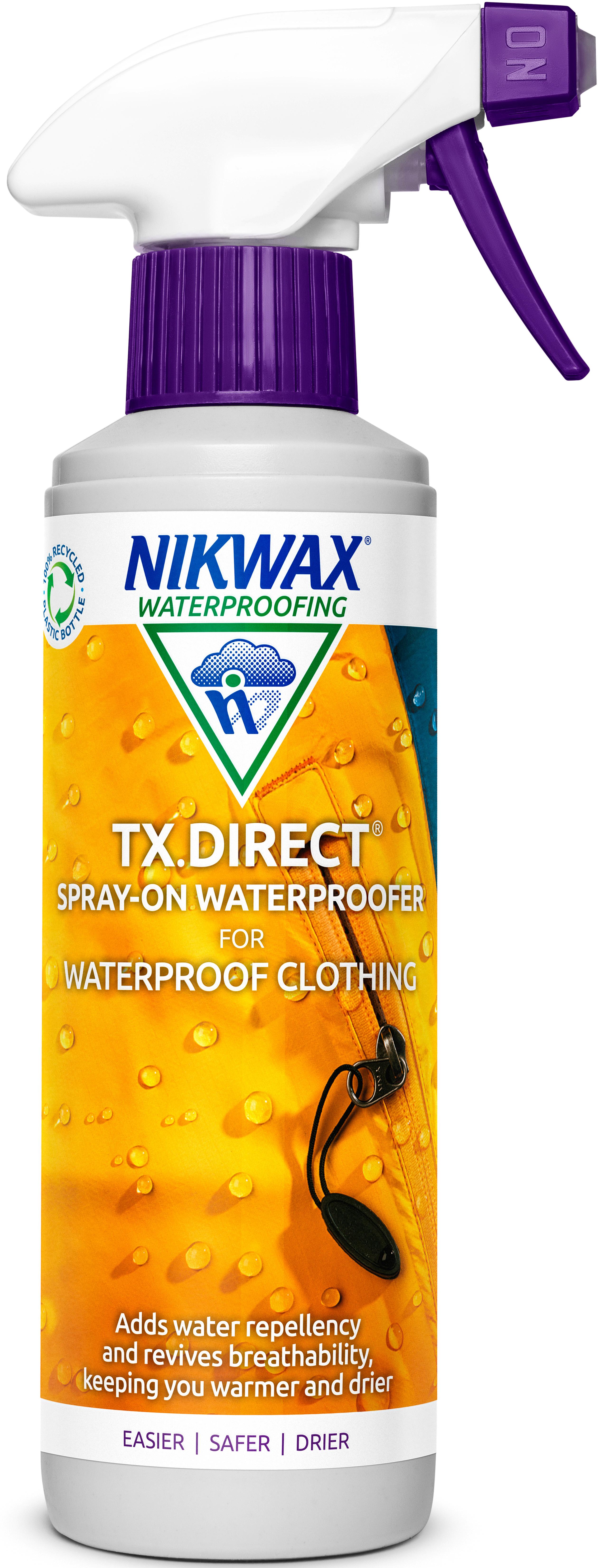 The Nikwax TX Direct Spray-On 300ml is an easy to use spray-on waterproofing for all breathable waterproof clothing with wicking liners. It adds water repellency to the areas that need it most and revives breathability without tumble drying and enhances the performance of your gear, keeping you warmer and drier. Recommended for Gore-Tex®, Sympatex®, eVent®, Nikwax Analogy® and all other waterproof fabrics.