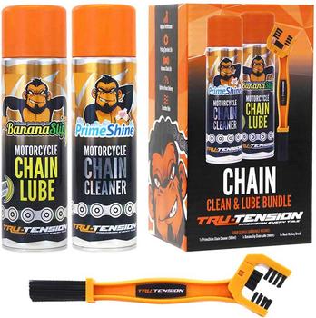 Contains Prime Shine Chain Cleaner, Muck Monkey Brush Tool, Banana Slip Chain Lube