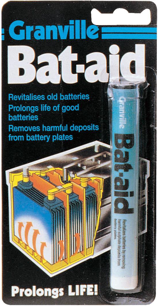 The Granville Bat-Aid is a specially formulated blend of acidic salts of rare earth metals designed specifically to extend the life, aid and replenish failing or poorly performing lead acid batteries by removing insoluble sulphate deposits from the plates, effectivly raising the electrolyte level and thus restoring battery power. It is supplied in a convenient and easy to use tablet form making the battery treatment clean, easy and simple.