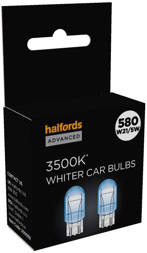Halfords Advanced 580 W21/5W 3500K Whiter Bulb Twin Pack